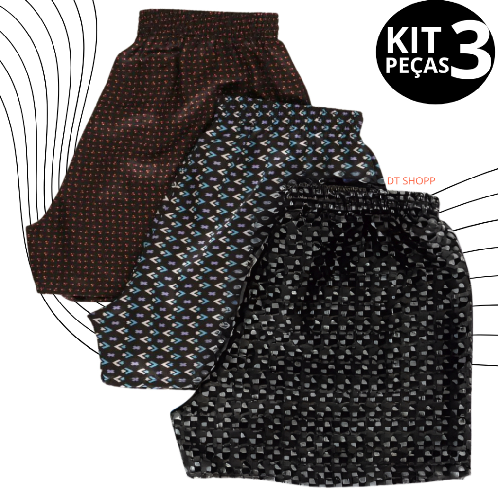 Kit com 3 Samba Canção Masculino - Short de Dormir - Cueca - Pijama