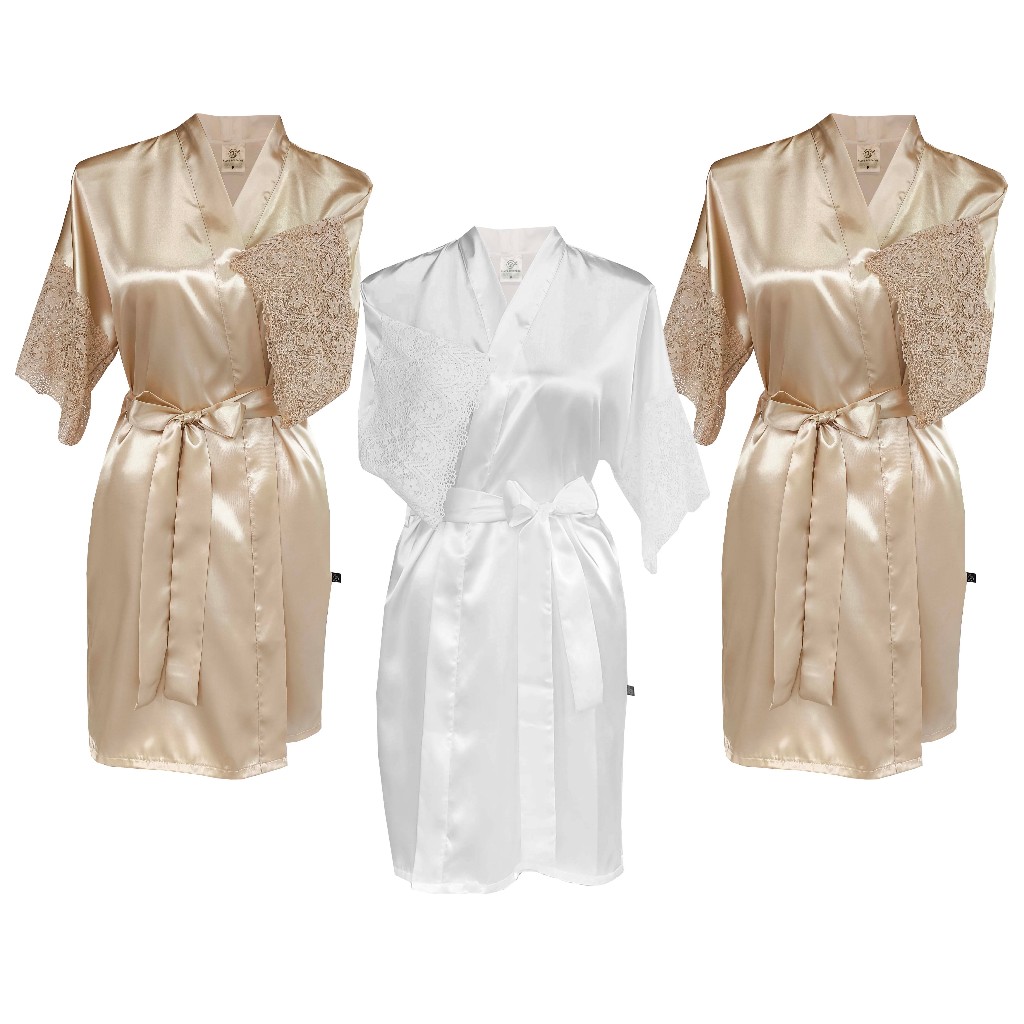 Kit com 3 robes de cetim com renda curta, noiva, mãe da noiva, mãe do noivo, madrinha, casamento