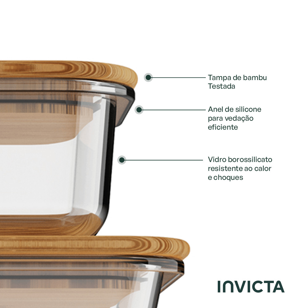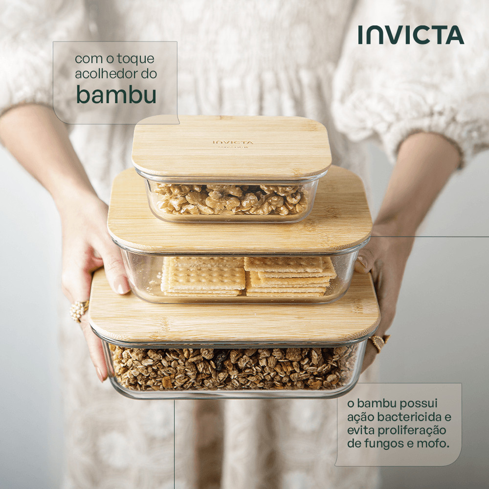Kit com 4 Potes de Vidro Conserve It Bamboo Invicta