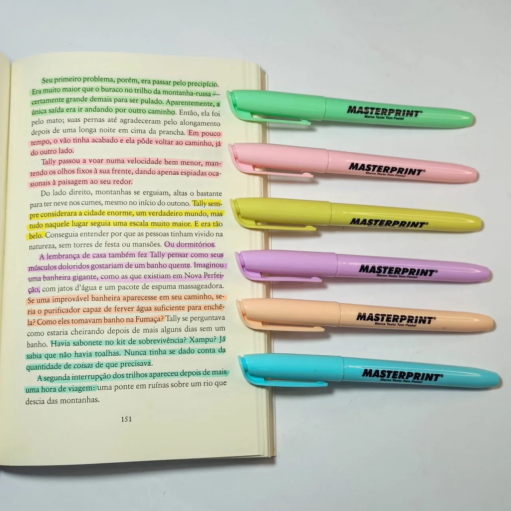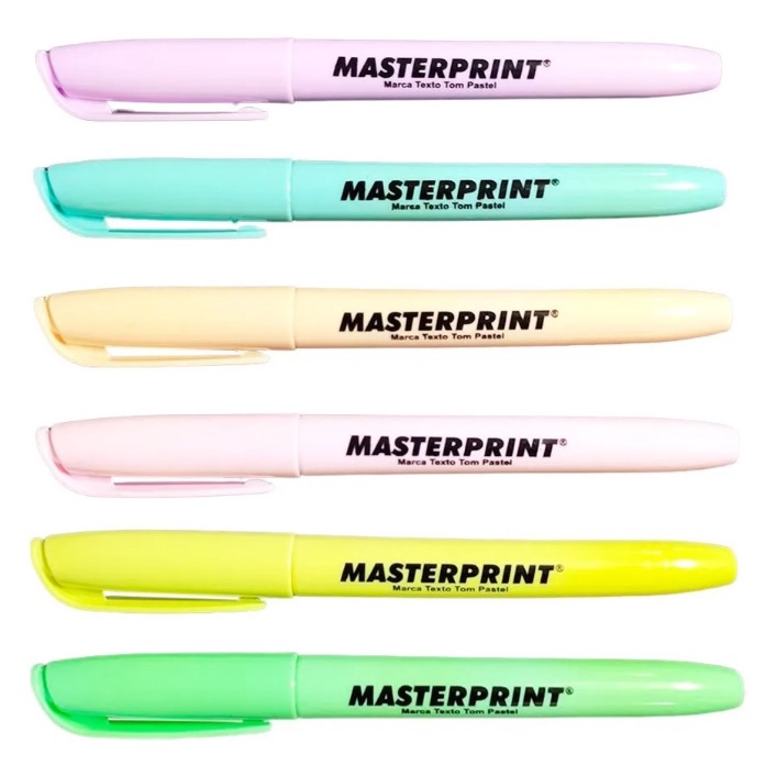 Kit com 6 Canetas Marca Texto Cores Pastel Masterprint