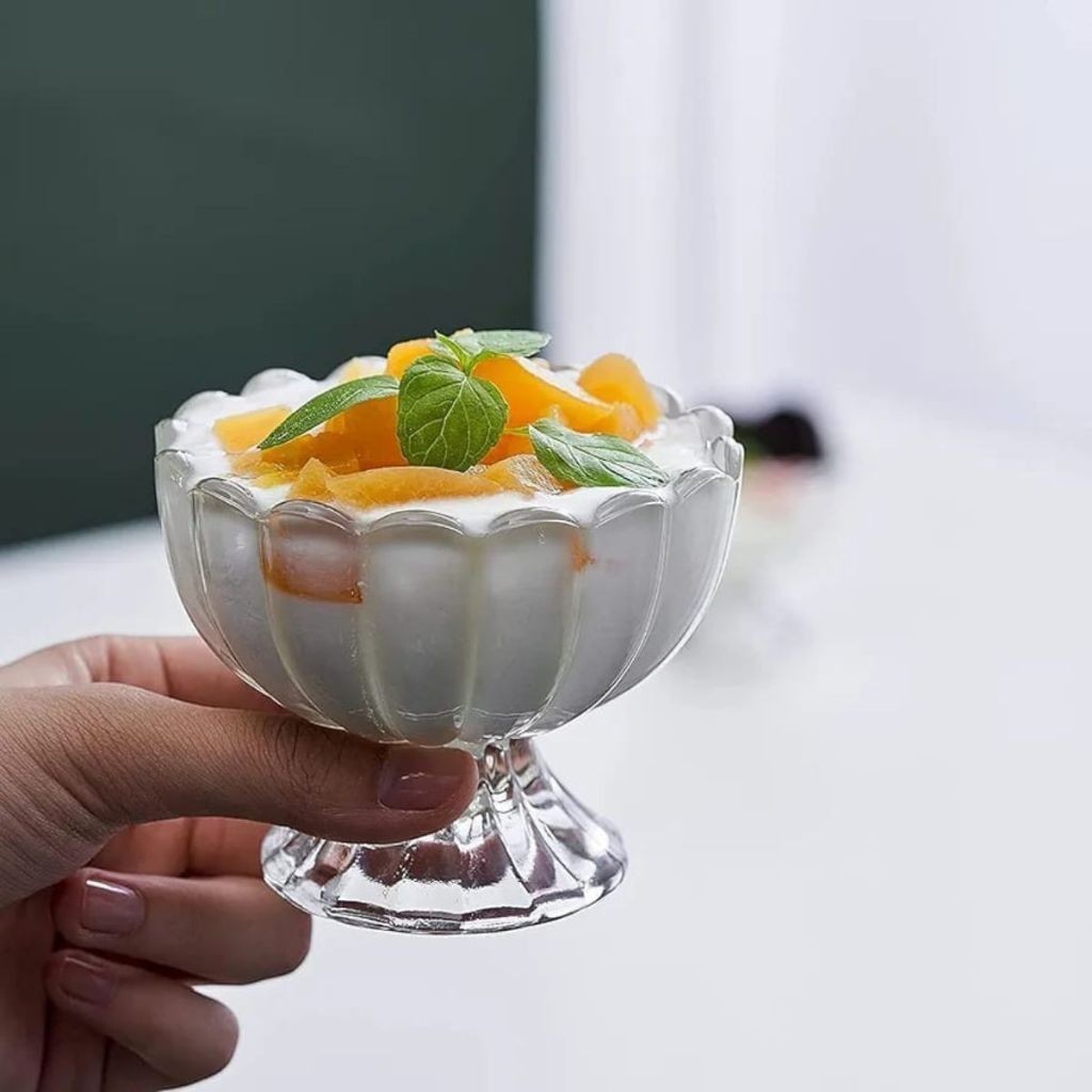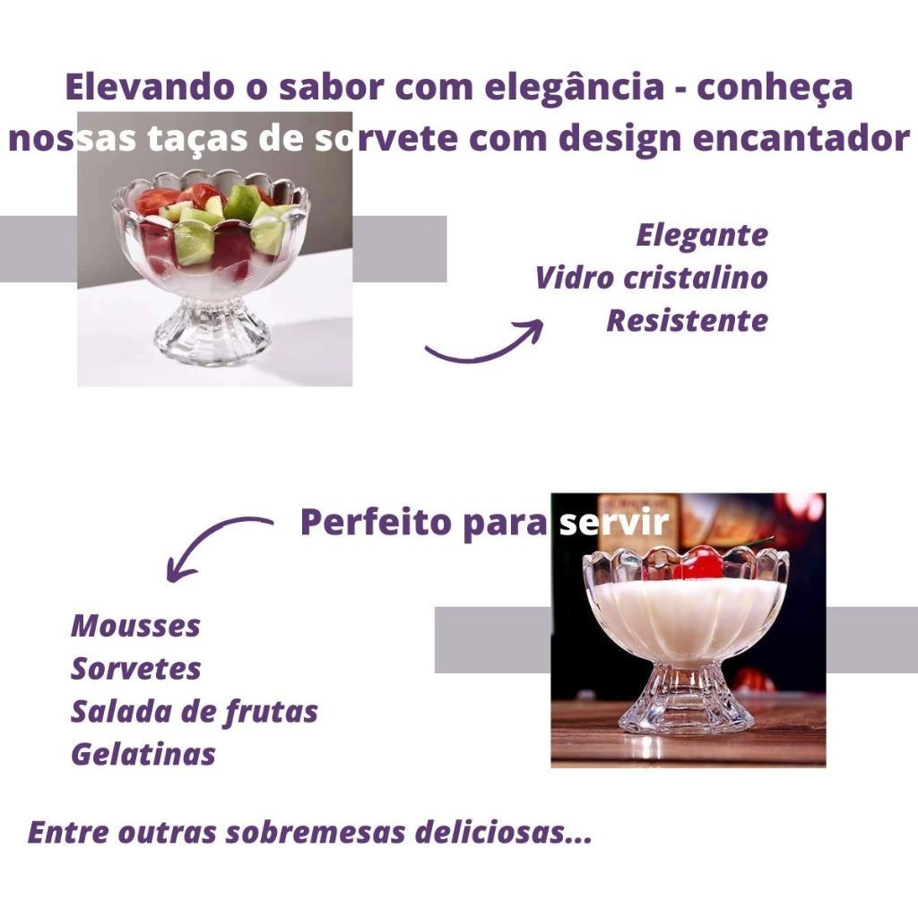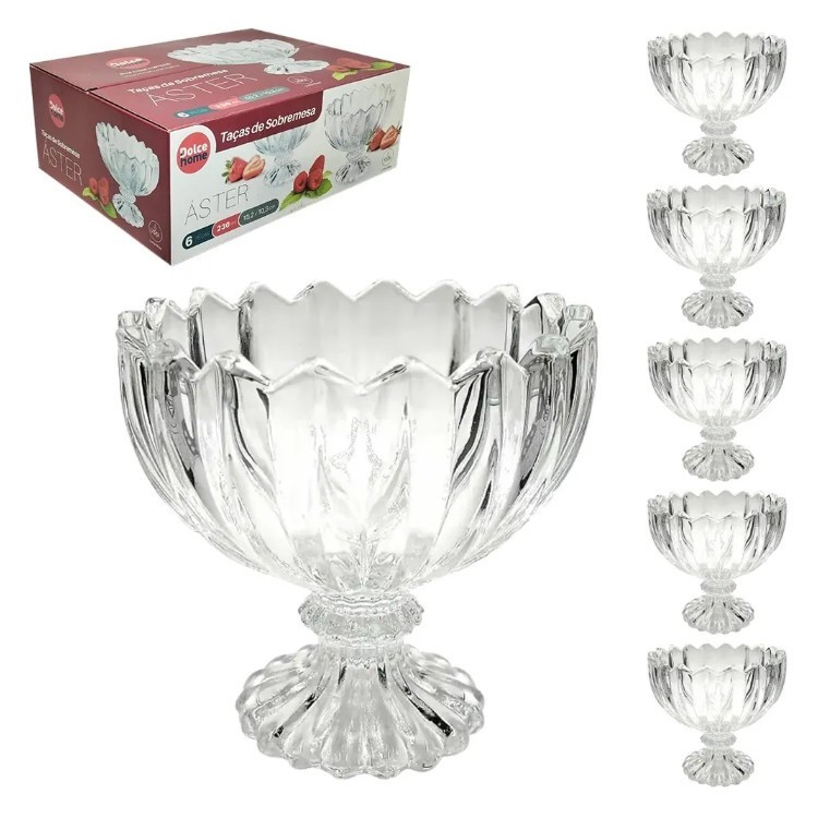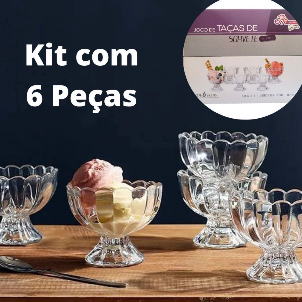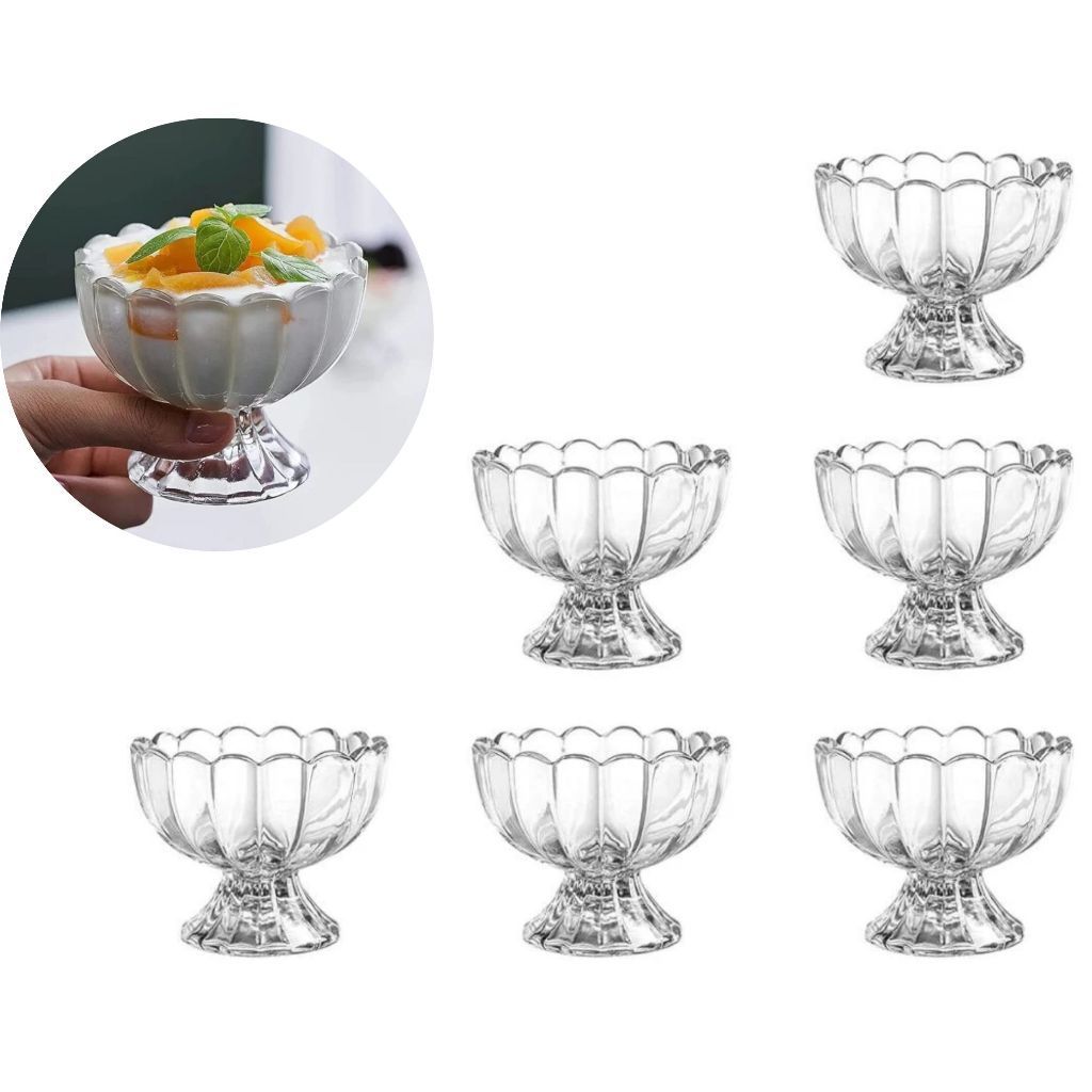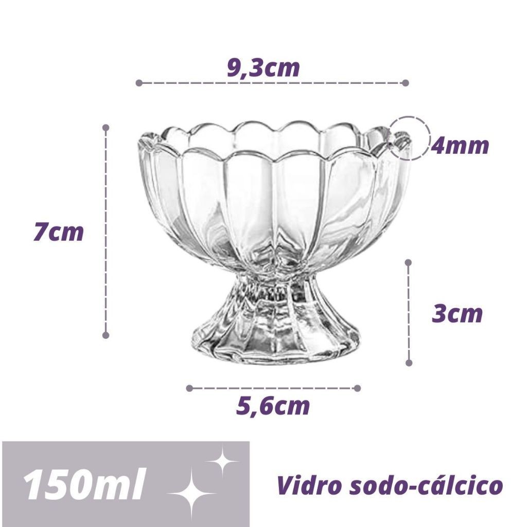 Kit com 6 Taças de Vidro Decoradas para Sorvete e Sobremesa 135ml