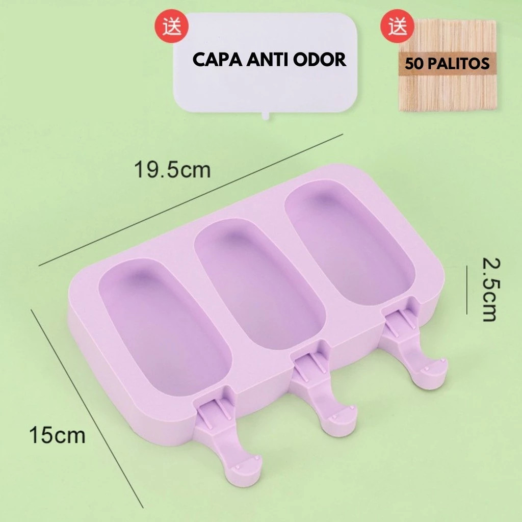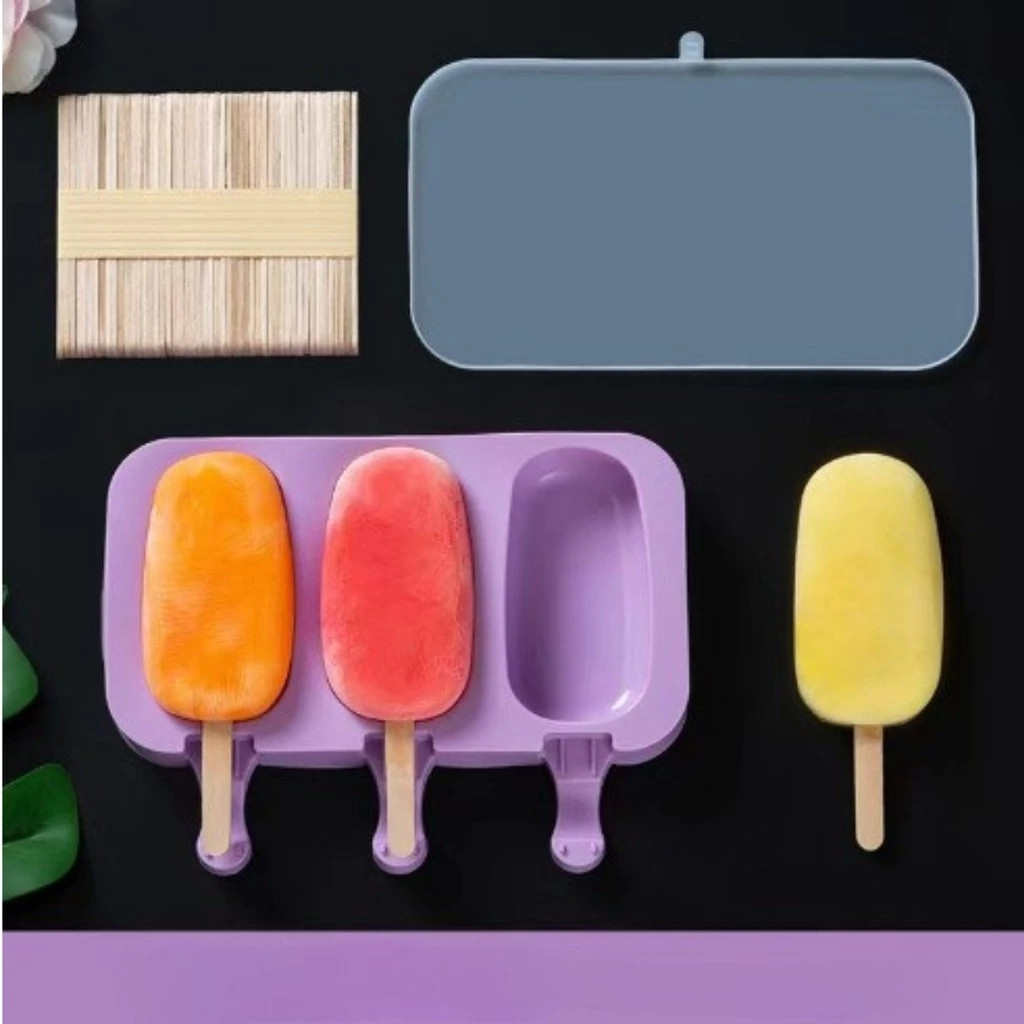 Forma de Silicone Para Picole e Sorvete de Silicone Com Tampa + 50 Palitos Caseiro Infantil