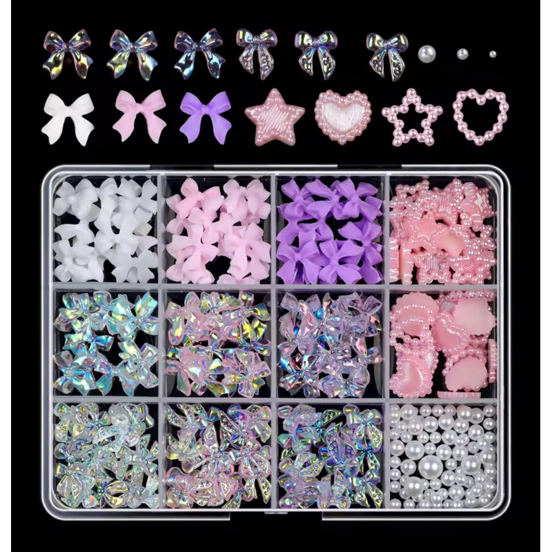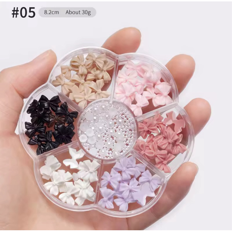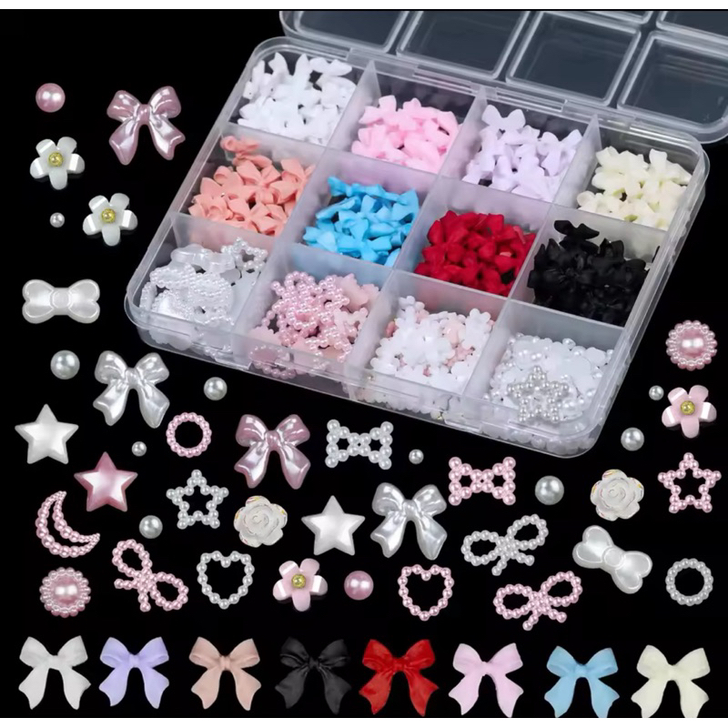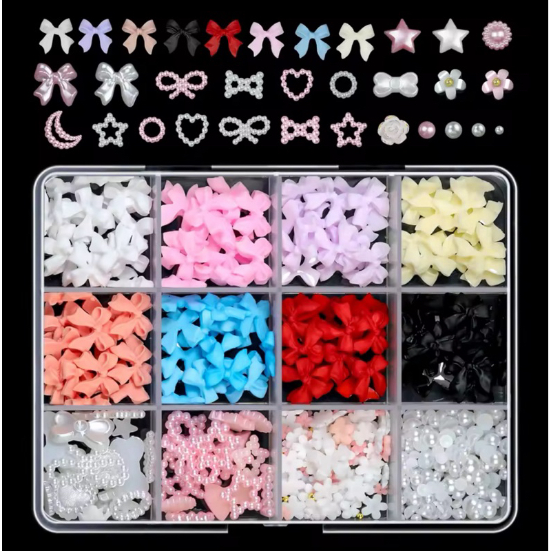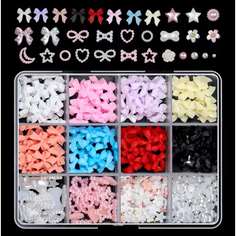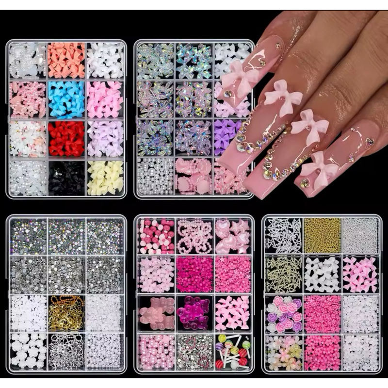 Kit com Laços 3D e Pérolas para Unhas – Nail Art Luxo | Vários Modelos e Cores