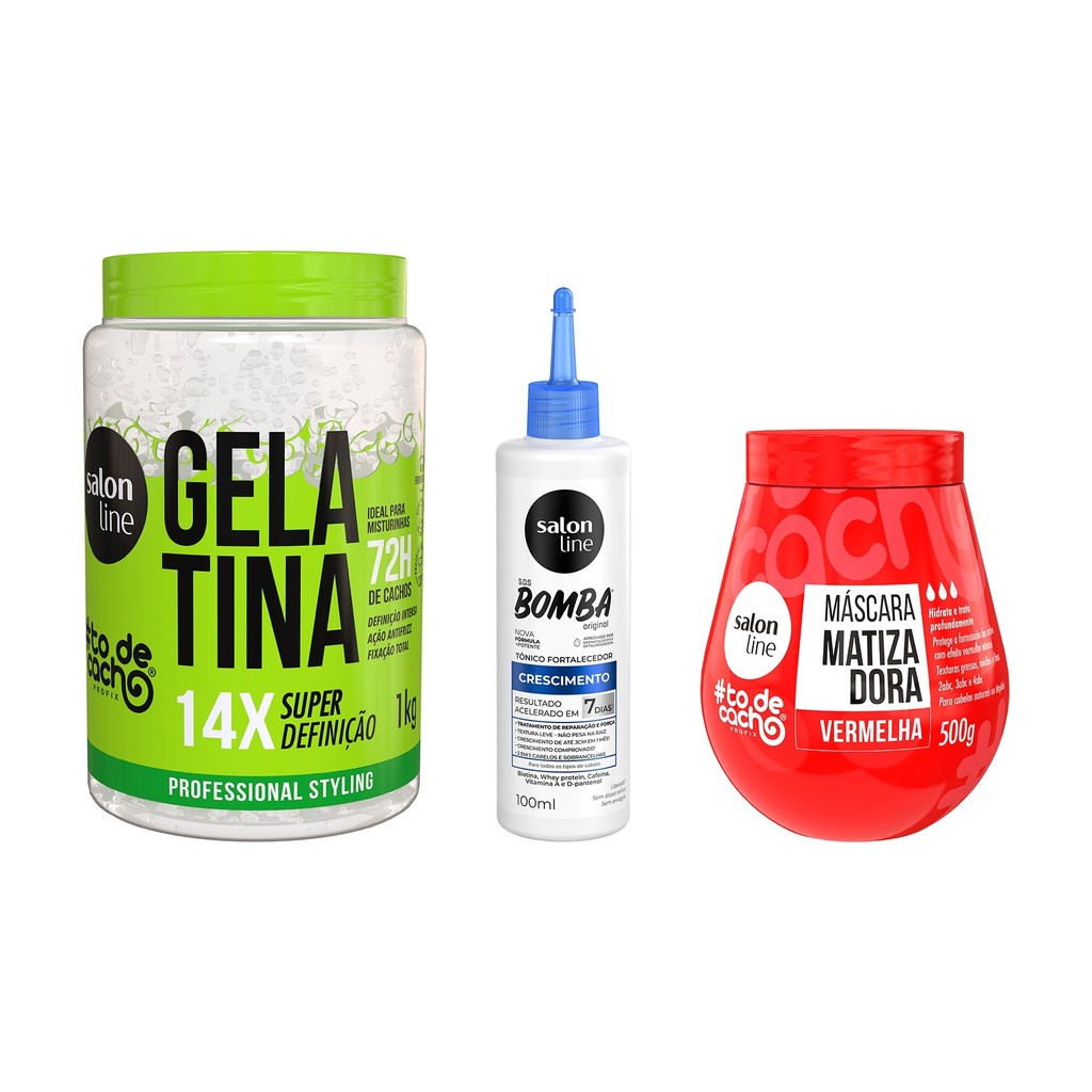 Kit com Máscara Matizadora Vermelha + Tônico Fortalecedor + Gelatina Super Definição Salon Line