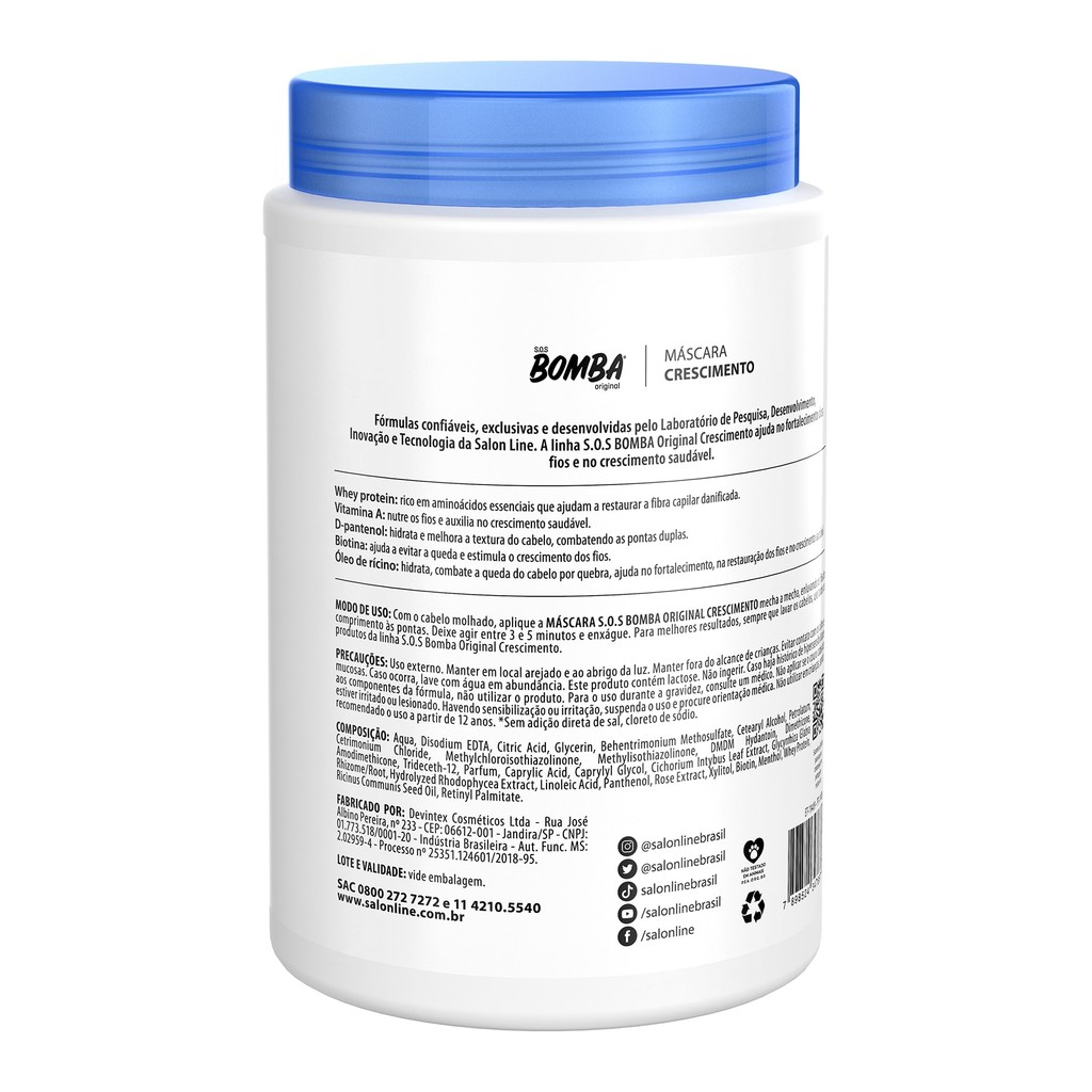 Kit com Tônico Fortalecedor Crescimento Acelerado + Condicionador + Máscara de Hidratação SOS Bomba Salon Line
