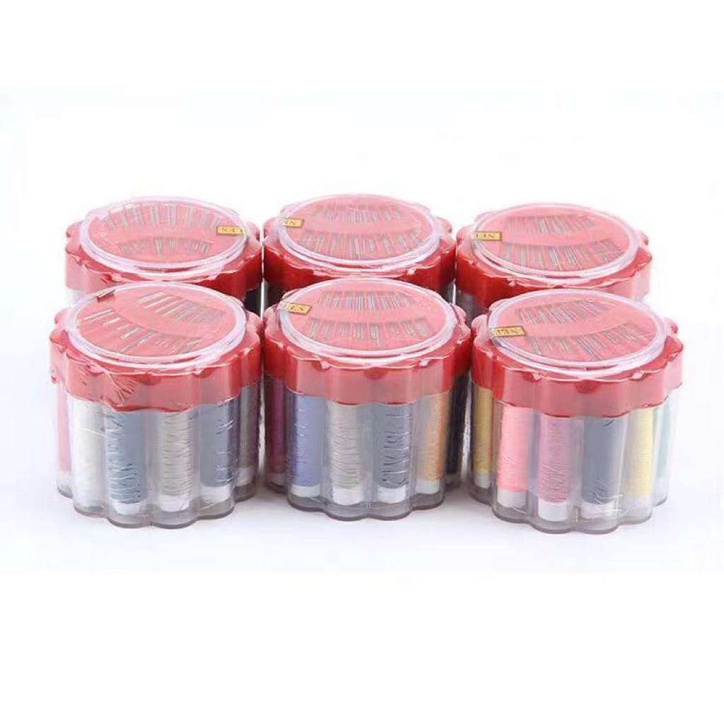 Kit costura Emergencia com 21 peças linha agulhas e fita métrica