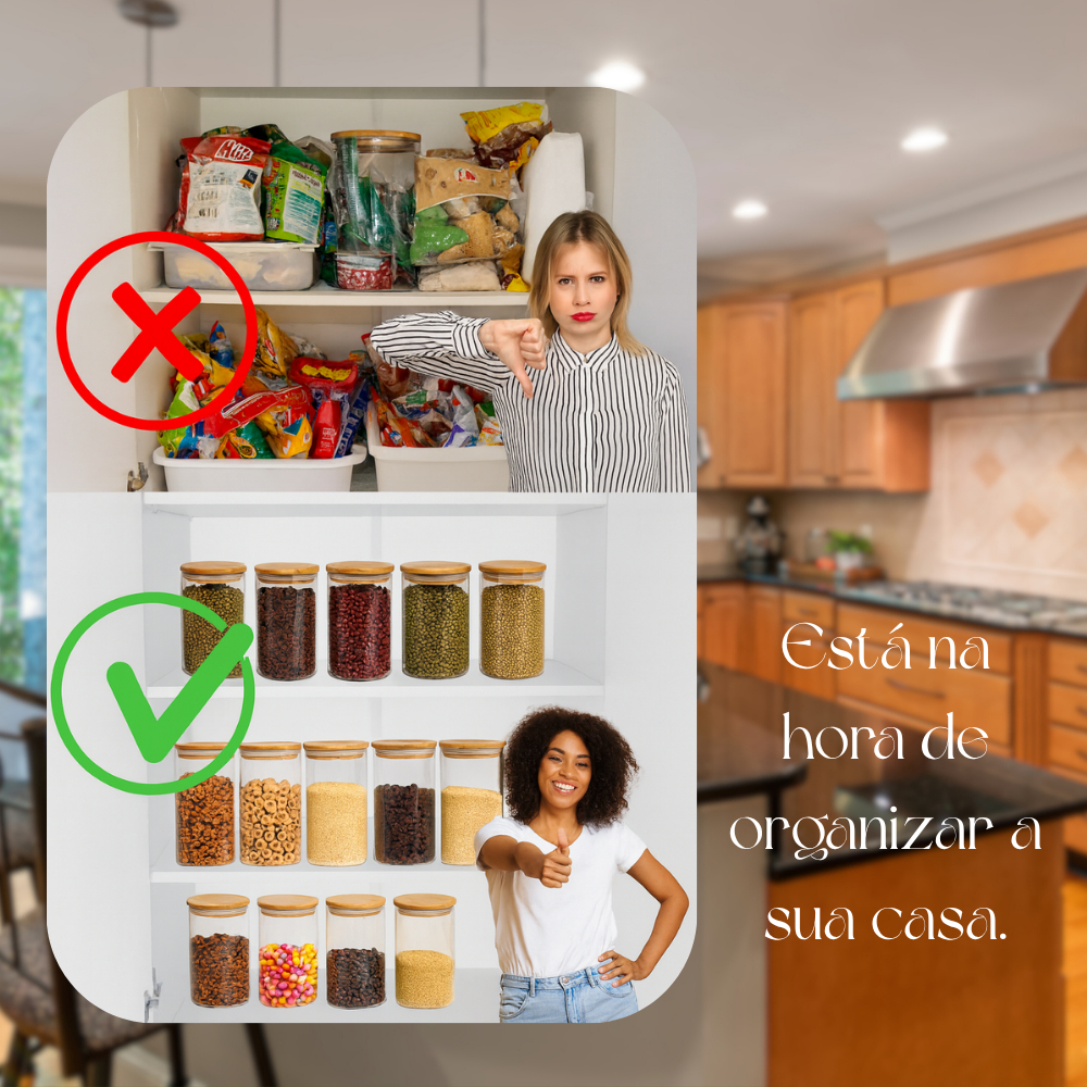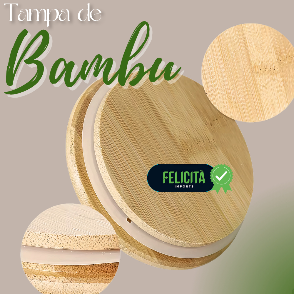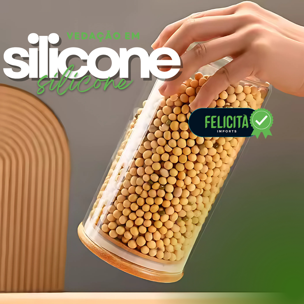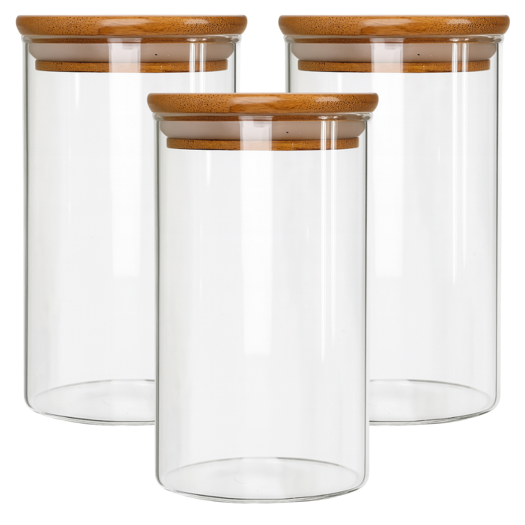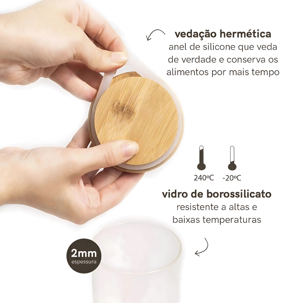 Kit de 3 Potes De Vidro Borossilicato 1 Litro Com Tampa Bambu Hermético Kit 1000ml Alimento