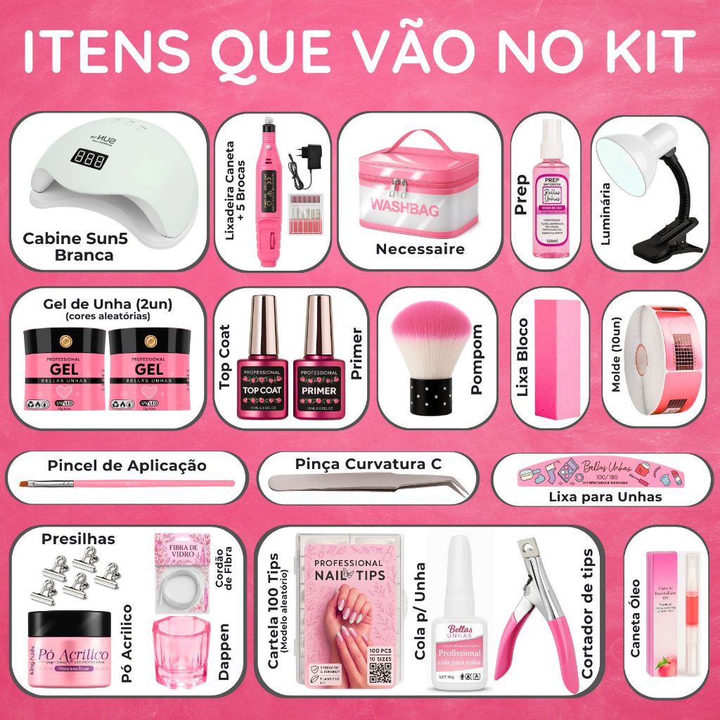 Kit de Alongamento de Unha Gel e Fibra Completo Fibra Gel Profissional | Envio Imediato