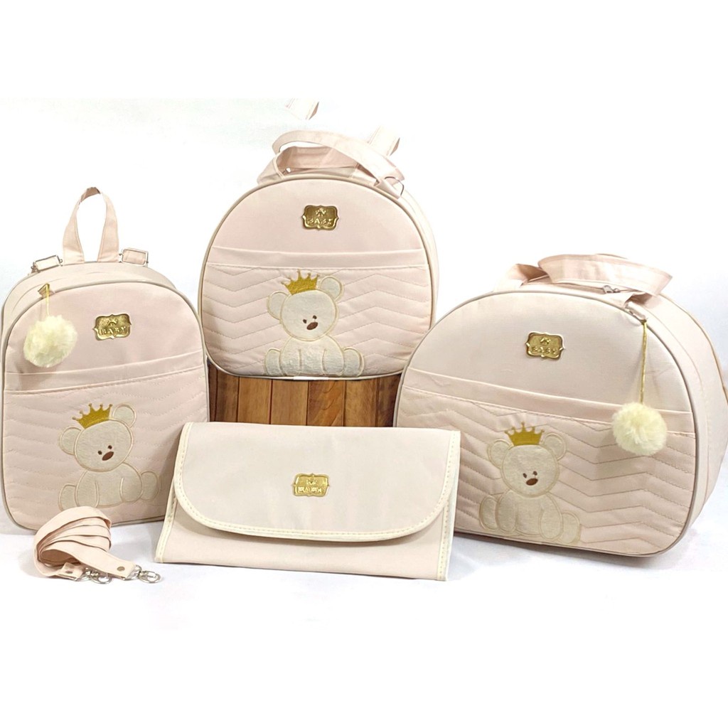 Kit de Bolsas Para Saída de Maternidade Ursinho com Mochila e Trocador de bebê