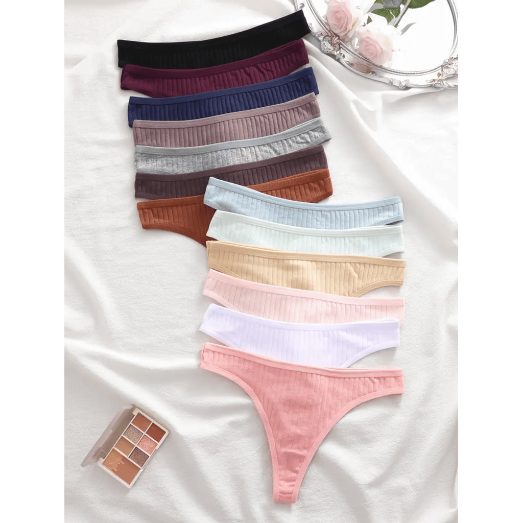 Kit de Calcinha Fio Dental Feminina Canelado Forro de Algodão