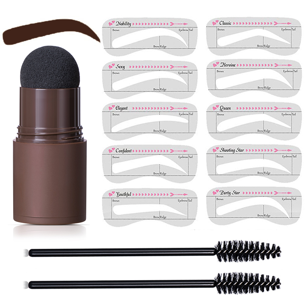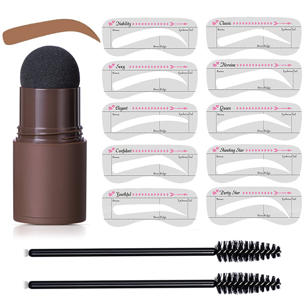Kit de Carimbo de Sobrancelha com Pó para Sobrancelha e 10 Moldes Reutilizáveis para Modelagem de Maquiagem, Presente