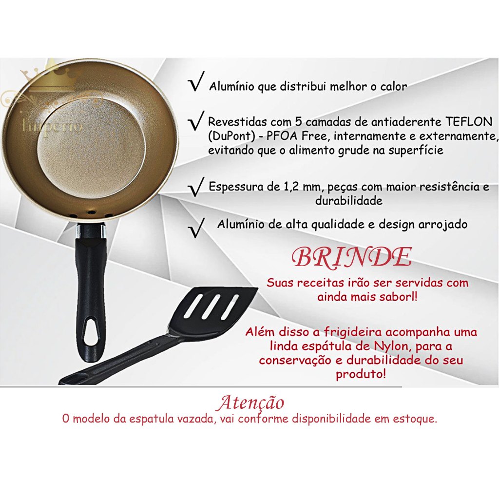 Kit de Frigideiras 2 Peças Tamanho 24 E 16 Cm Com Espátula 2 Frigideira Antiaderente Francesa Com 5 Camadas De Teflon Cor Cereja E Dourado Cobre Alumínio Reforçada Funda Para Ovo