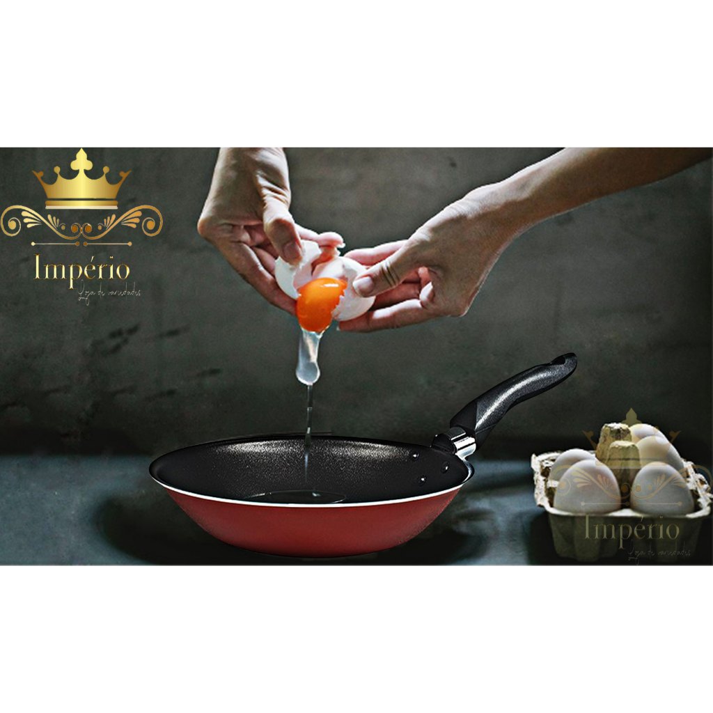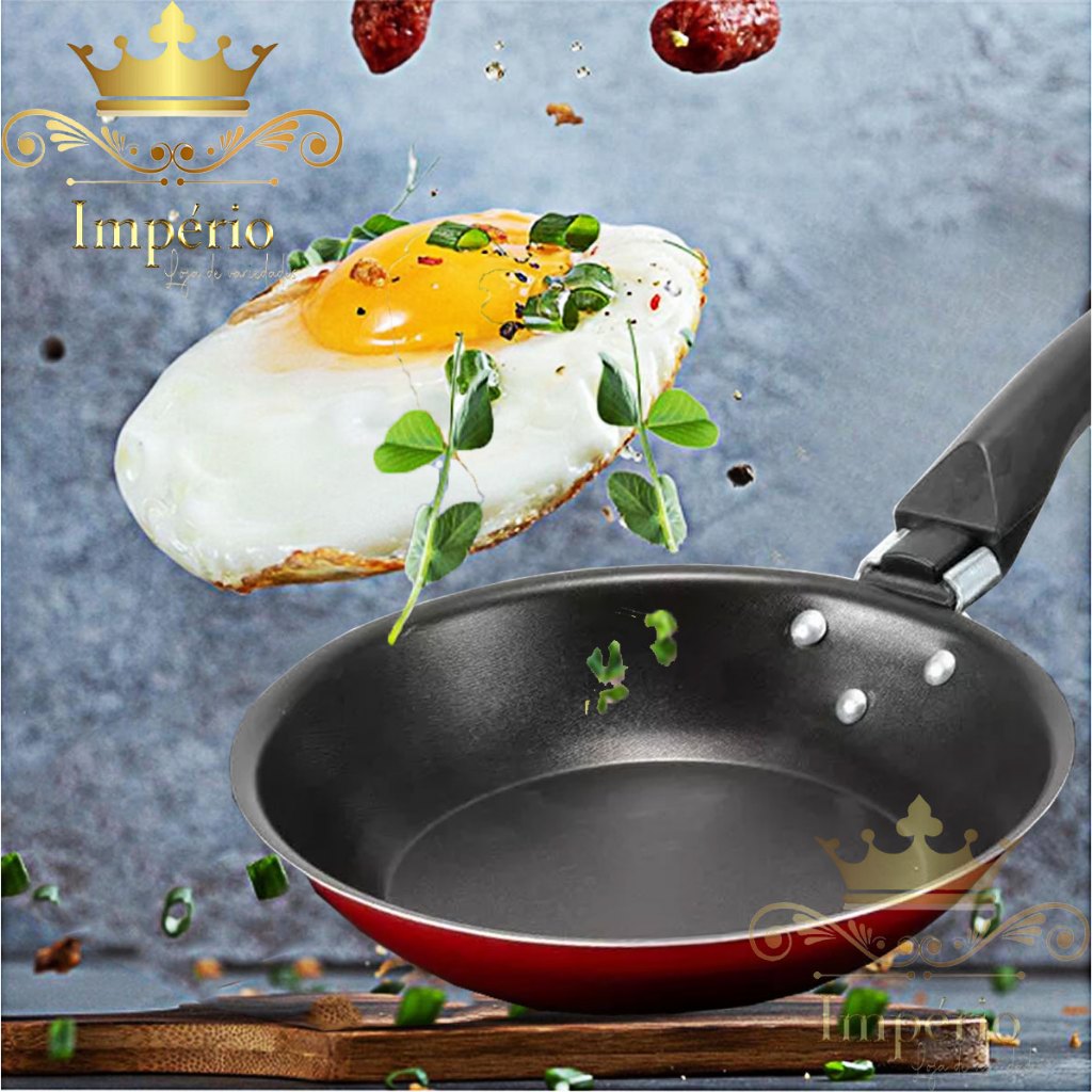 Kit de Frigideiras 2 Peças Tamanho 24 E 16 Cm Com Espátula 2 Frigideira Antiaderente Francesa Grande Com 5 Camadas De Teflon Cor Vermelha Preta Cobre Alumínio Reforçada Funda Para Ovo