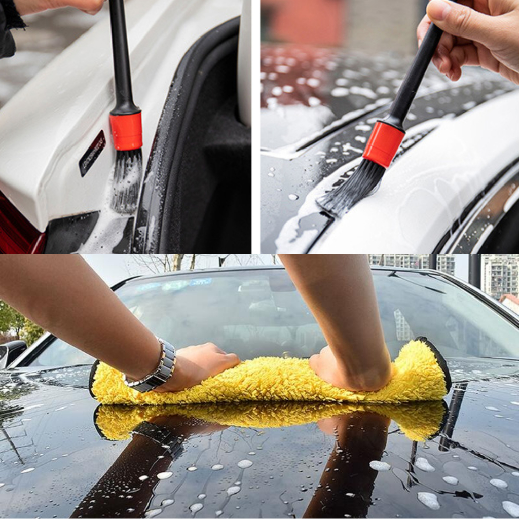 Kit de Lavagem Automotiva Flanela de Microfibra 30x40cm + 05 Pincel Detalhamento