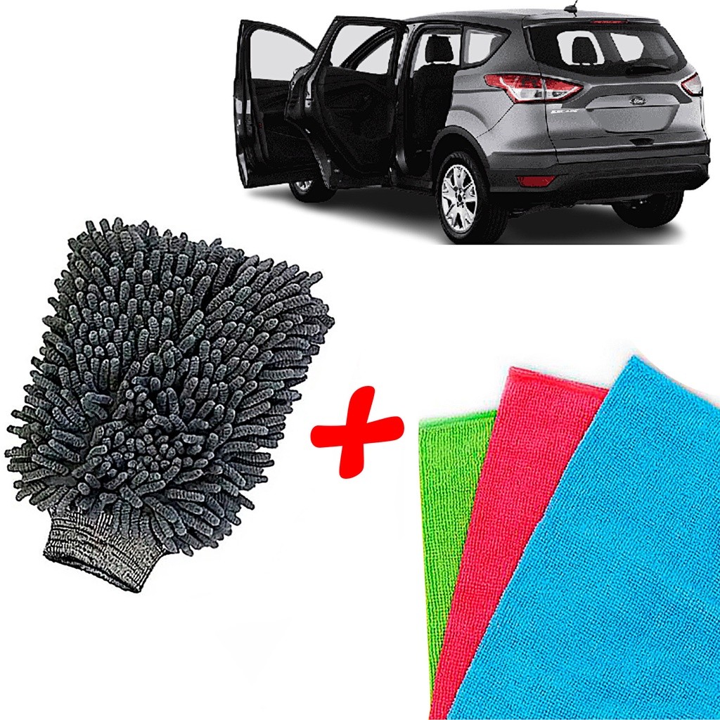 Kit de Lavar Carro Moto Limpeza automotiva Luva +3 Pano Microfibra