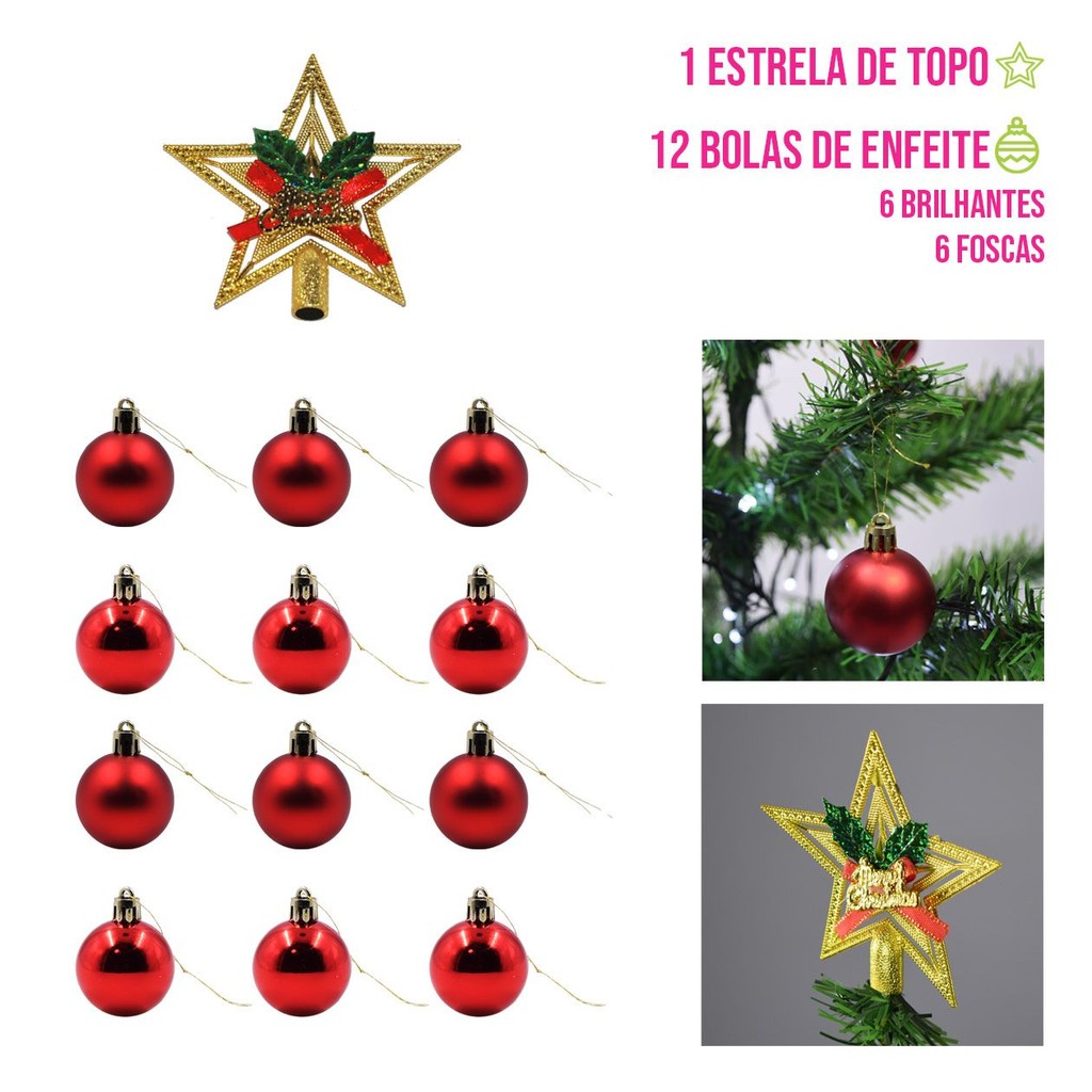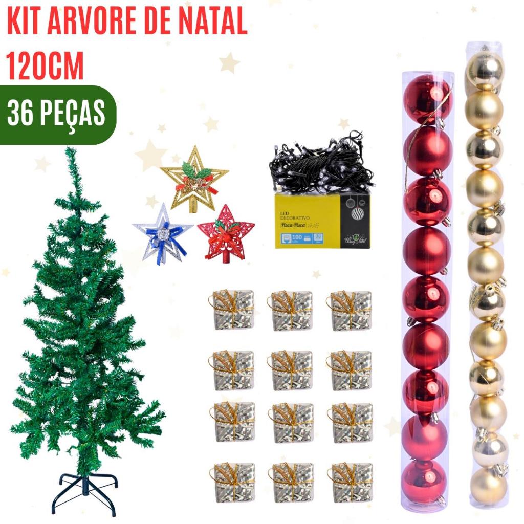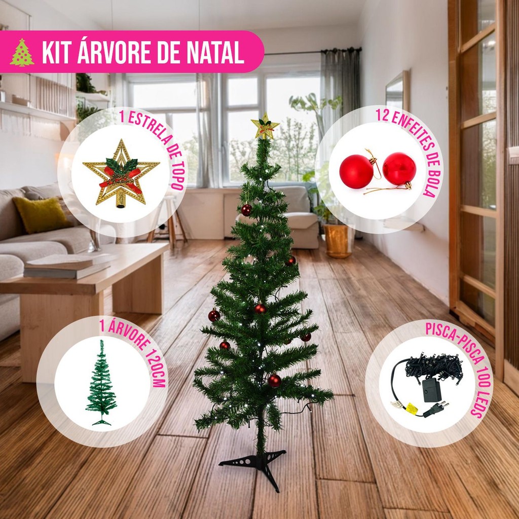 Kit de Natal para Espaços Pequenos Árvore 120cm + Pisca-Pisca + Enfeites - Bolas e EstrelaNatalina