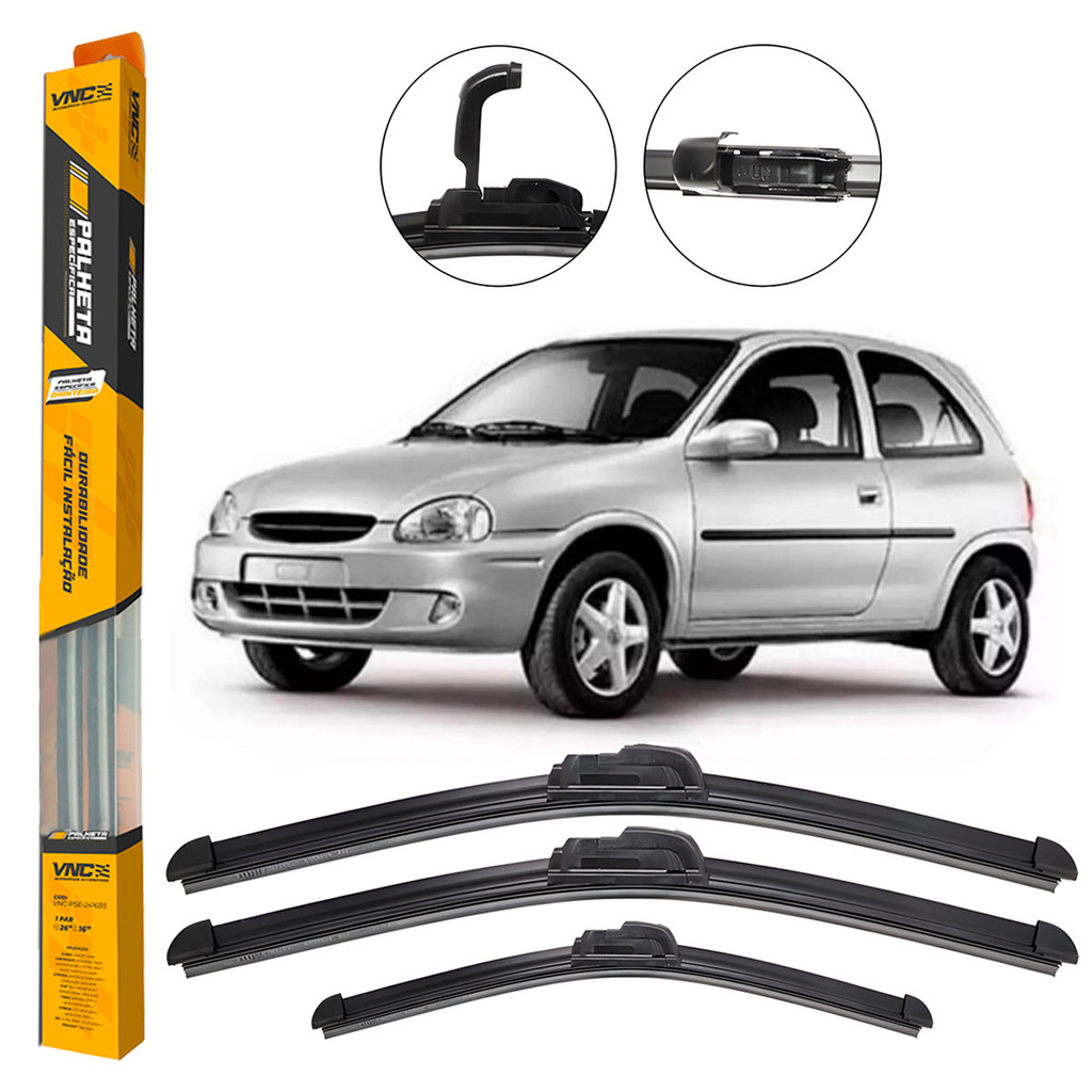 Kit de Palhetas Limpador de Parabrisa Dianteiro + Traseiro Chevrolet Corsa Hatch 1994 Até 2001