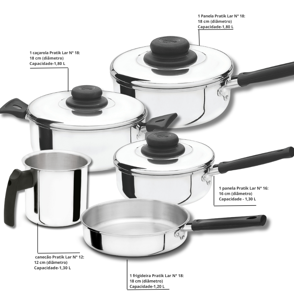 Kit de Panelas Cacarolas Polido Fortlar 5 pçs.- FA