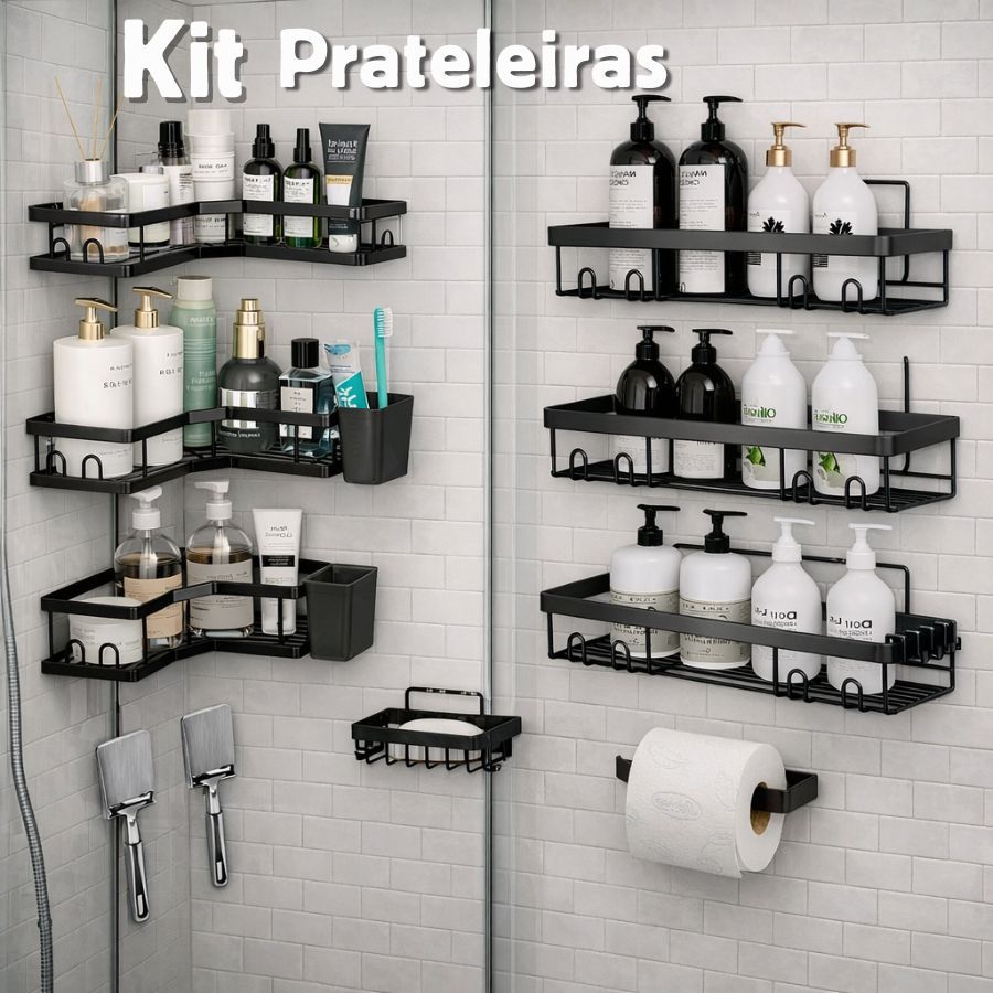 Kit de Prateleiras para Banheiro com Suporte para Shampoo, Sabonete e Papel Higiênico sem Perfuração