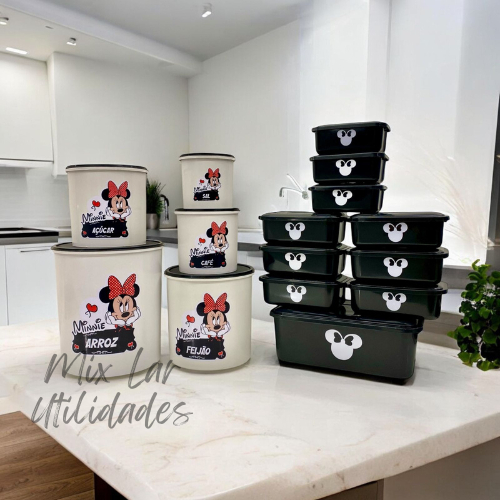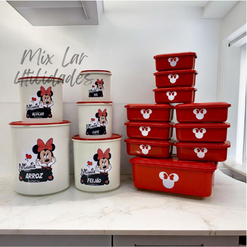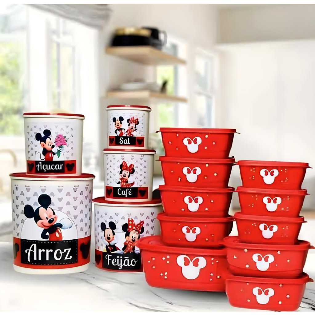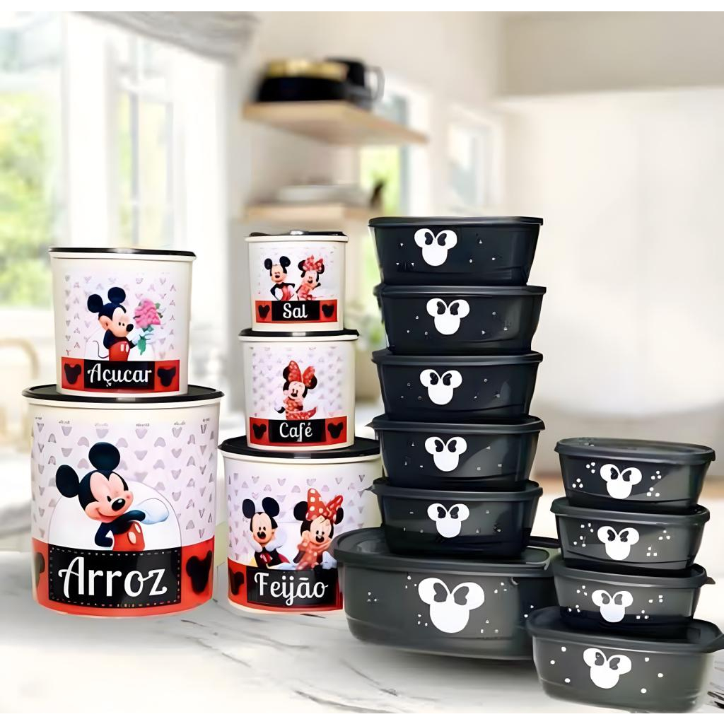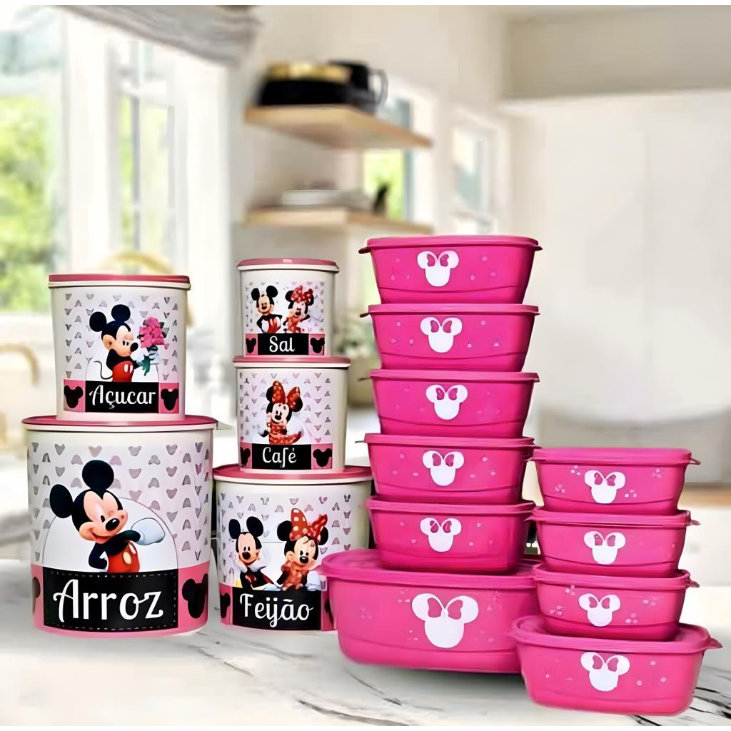 Kit de potes para Mantimentos com 5 peças + 10 Potes Minnie