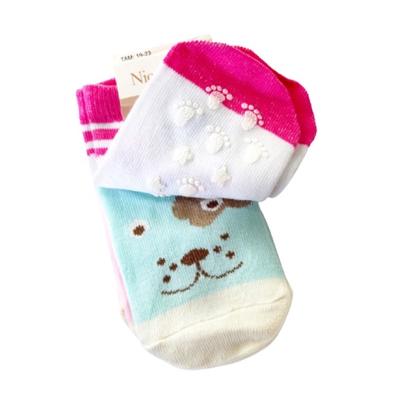 Kit de seis pares de meia antiderrapante infantil menina cano médio tamanho do 4/6 anos