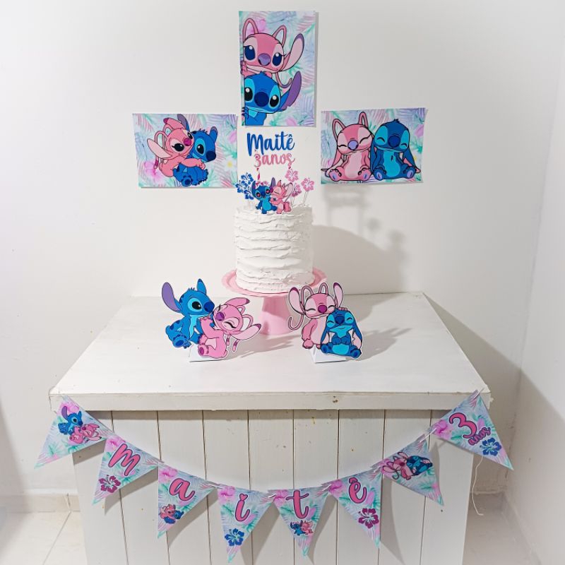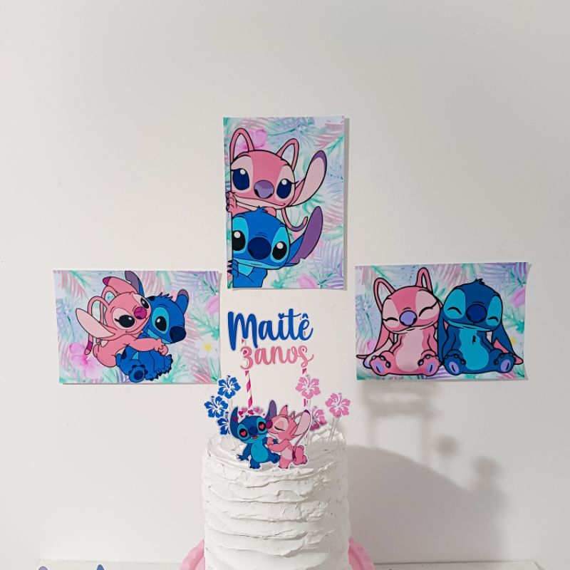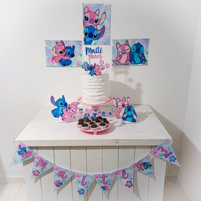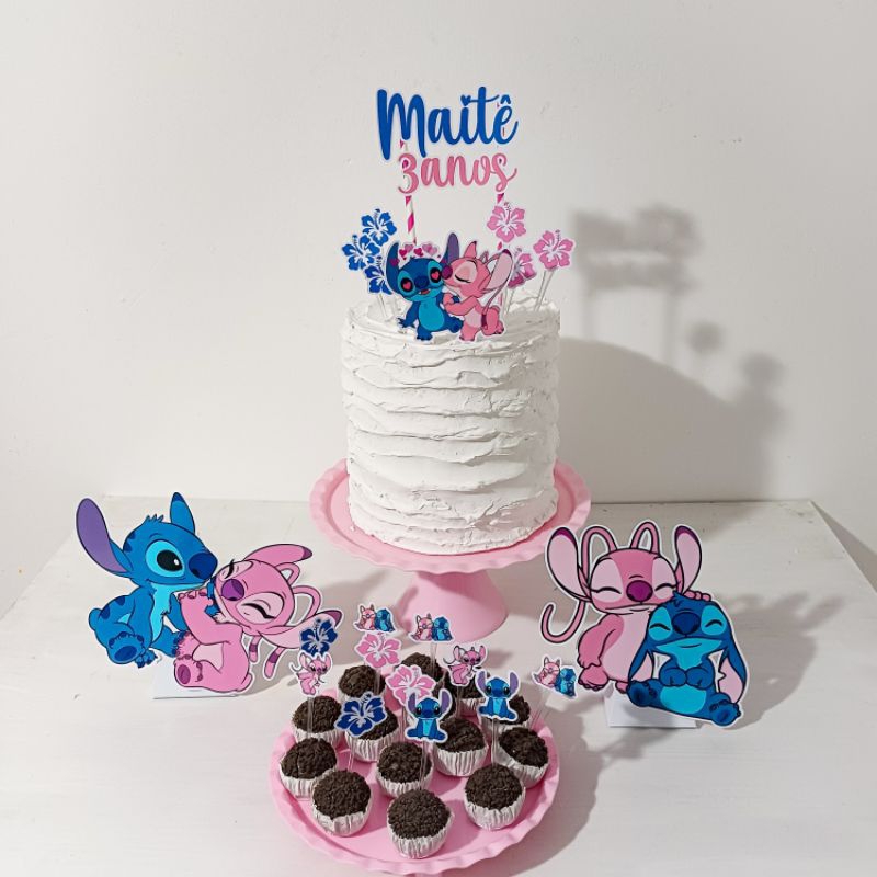 Kit festa Lilo Stitch azul e Angel rosa Personalizado | Só um bolinho | Mesversario| Aniversário| Lembrancinhas