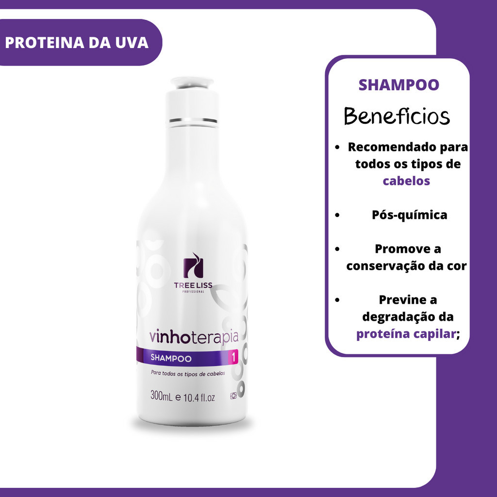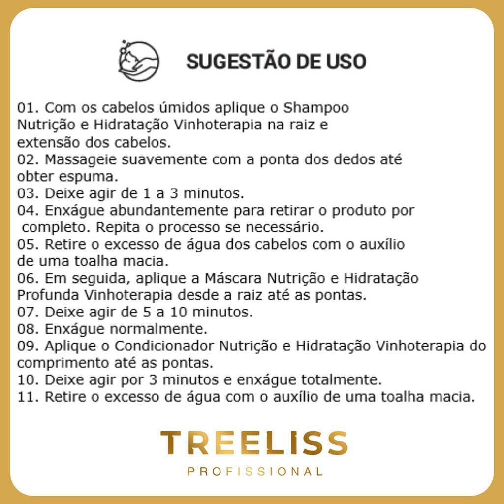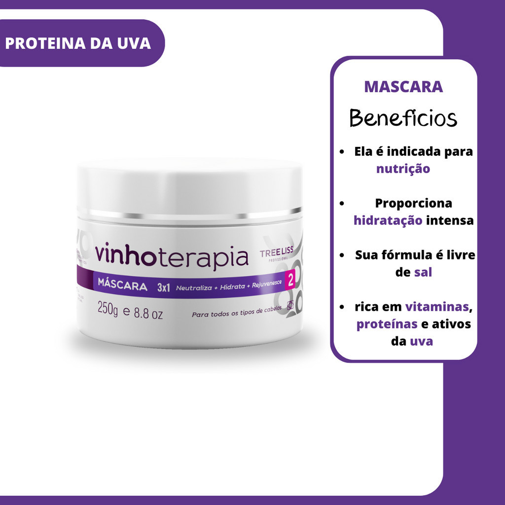 Kit hidratação e recontrução vinhoterapia shampoo condicionador e mascara treeliss