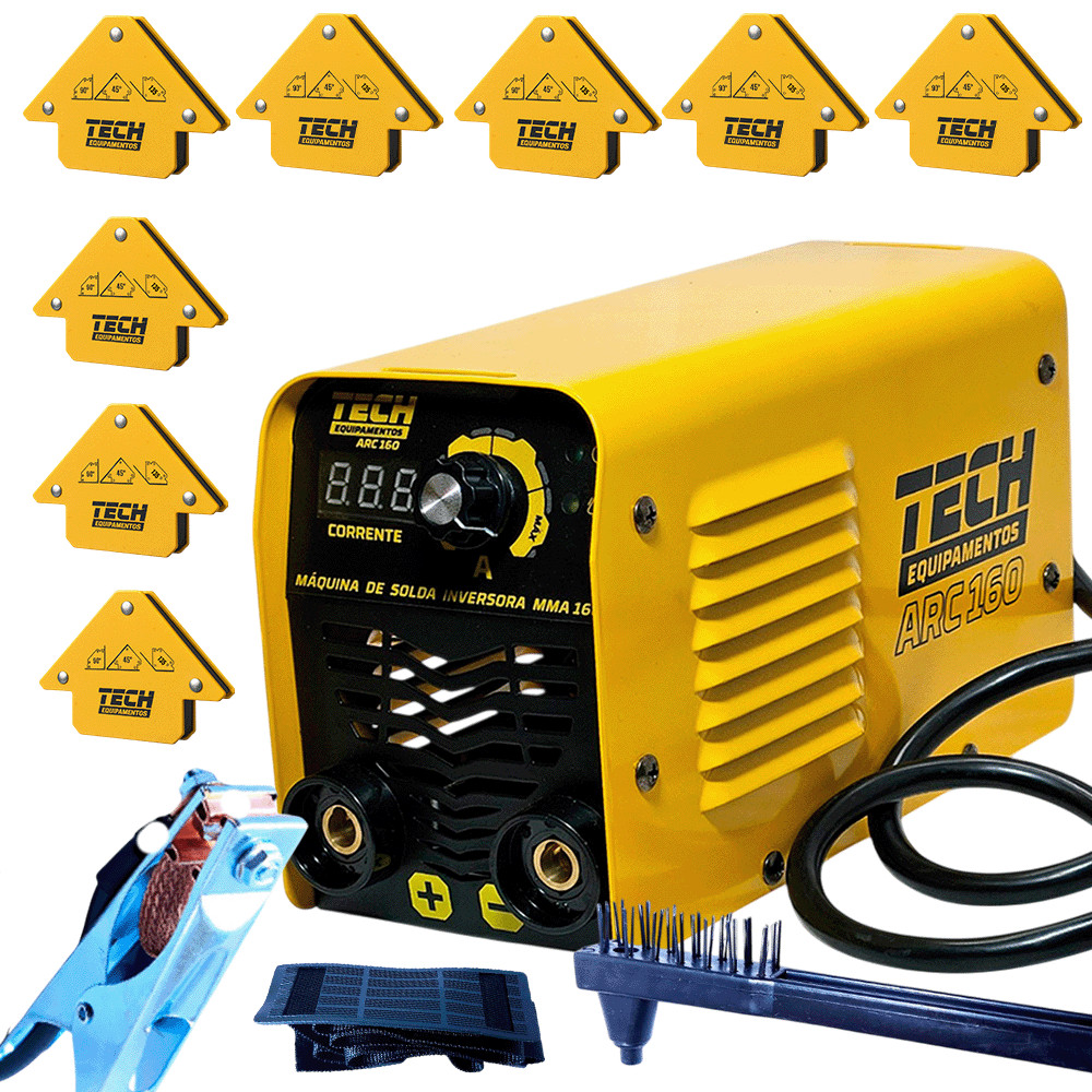 Kit inversora Solda ARC 160 TECH 220V com 8 Esquadros Magnéticos 12kg Porta Eletrodo Garra Máscara