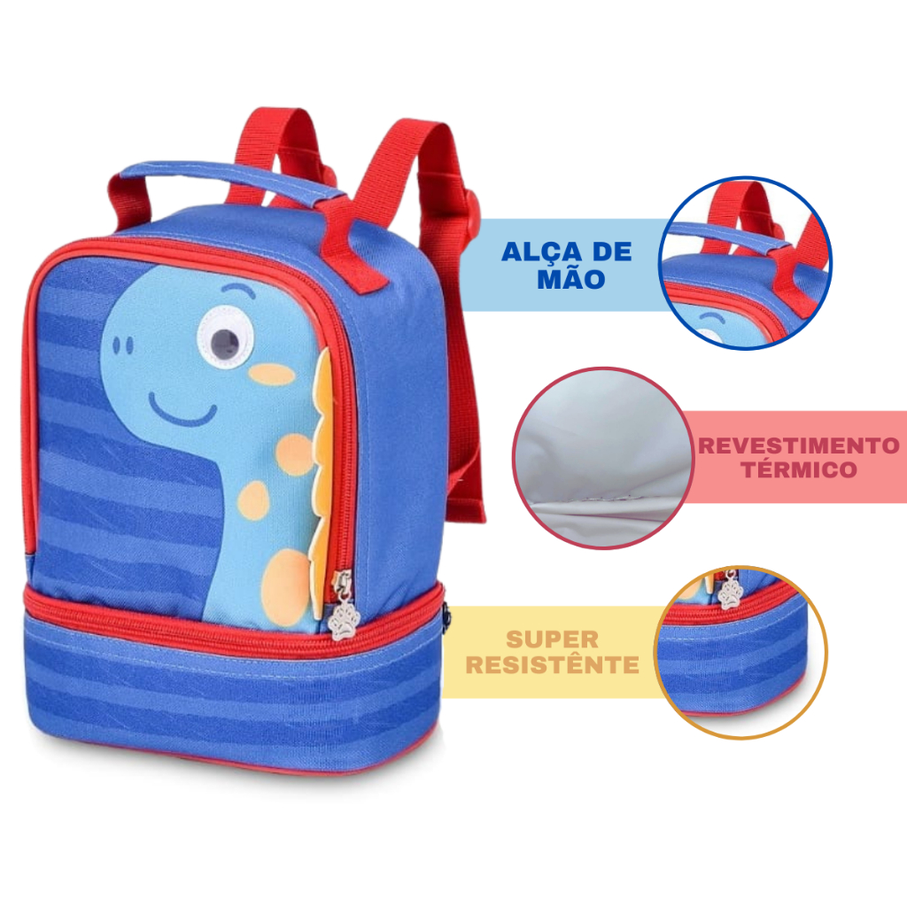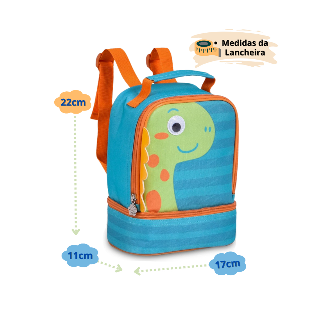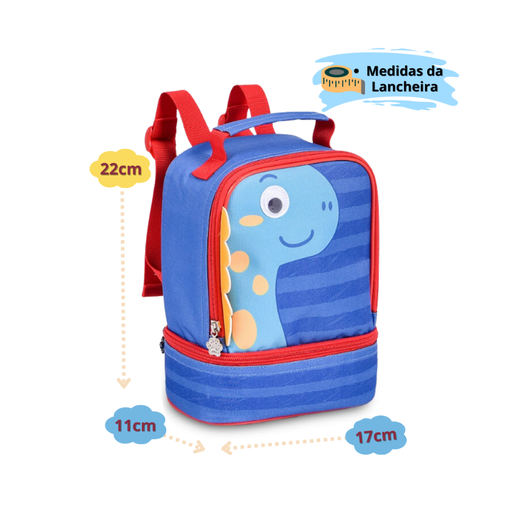 Kit mochila e lancheira infantil Escola Creche Menino Clio Dinossauro