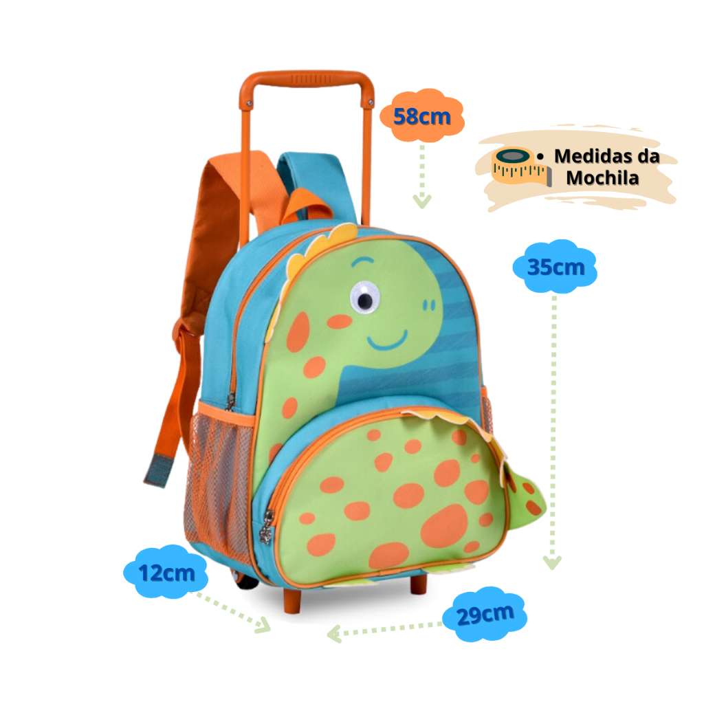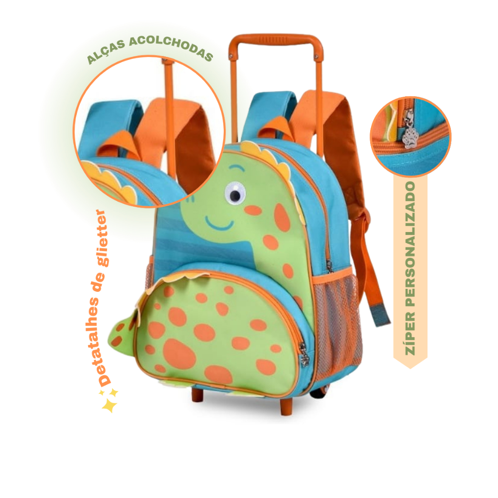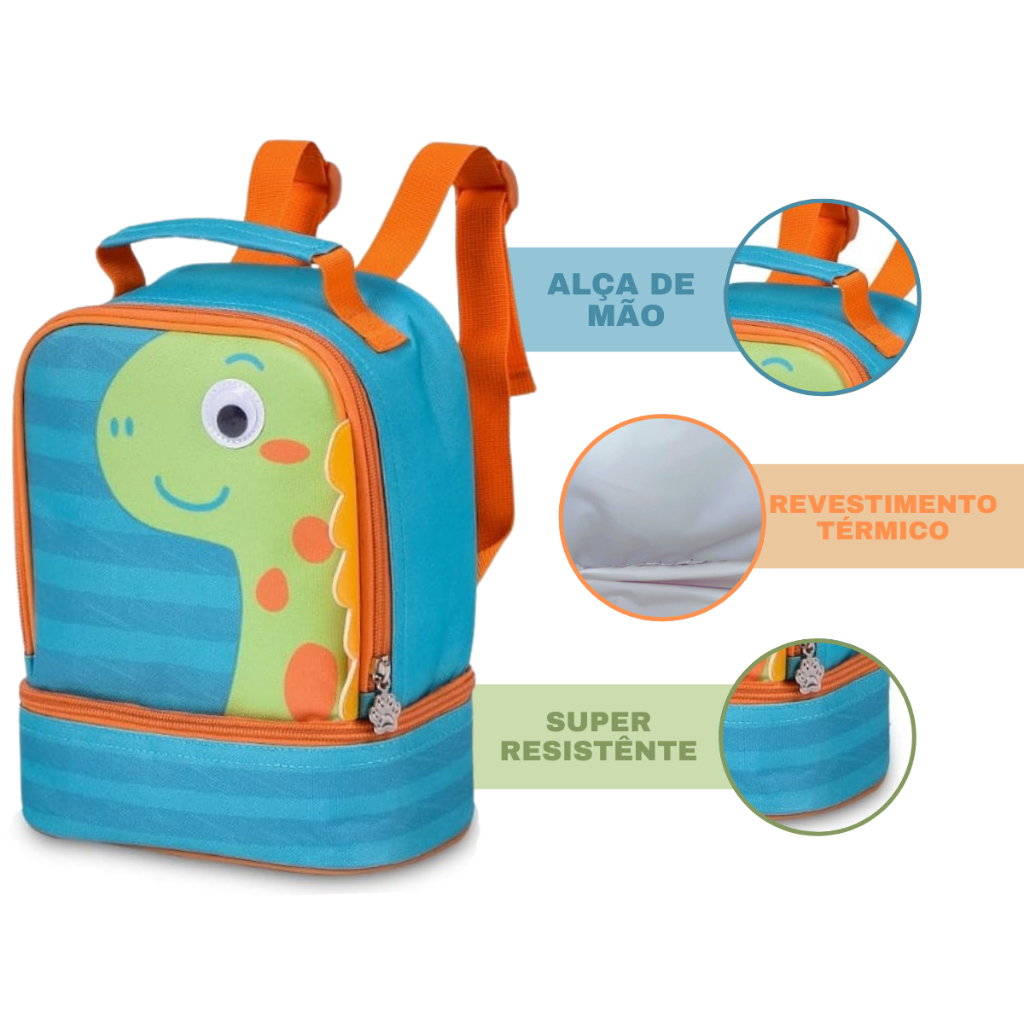 Kit mochila e lancheira infantil Escola Creche Menino Clio Dinossauro