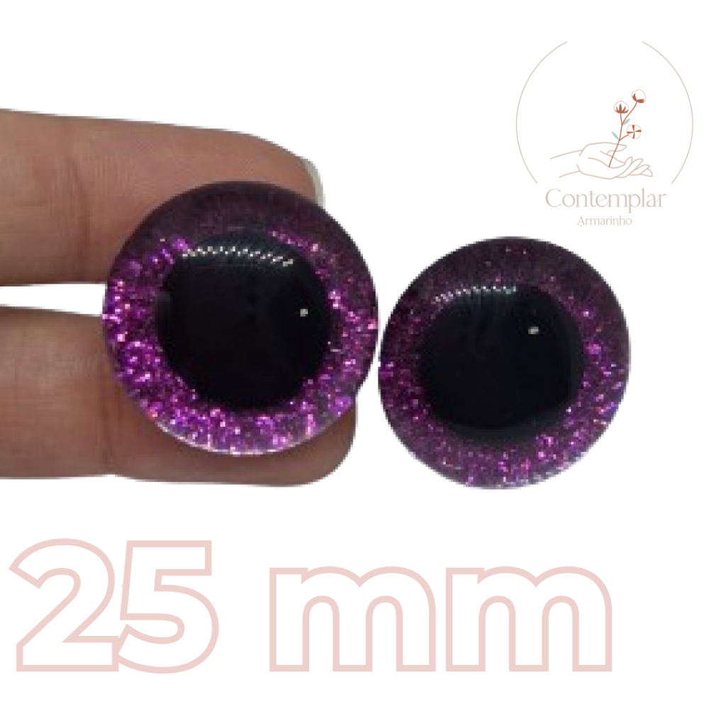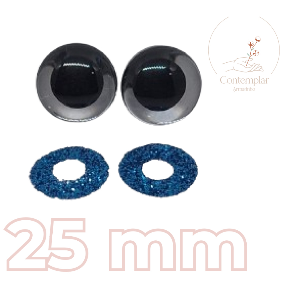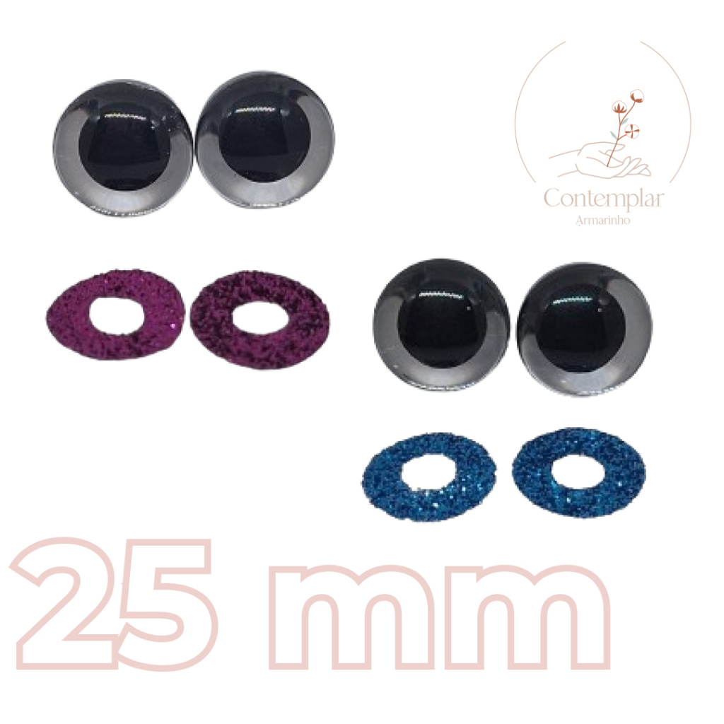 Kit olhos com glitter com trava de segurança para amigurumi - 25 mm - 2 unidades