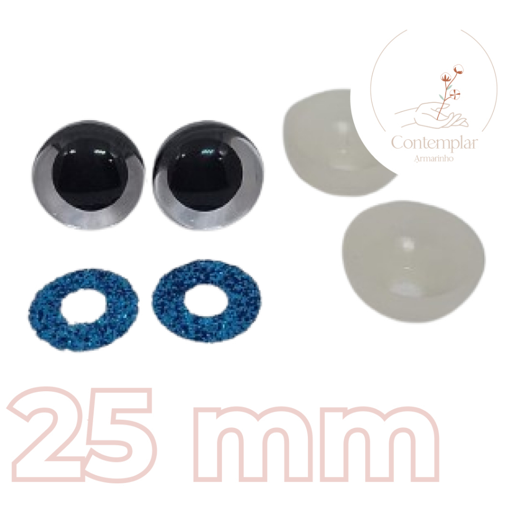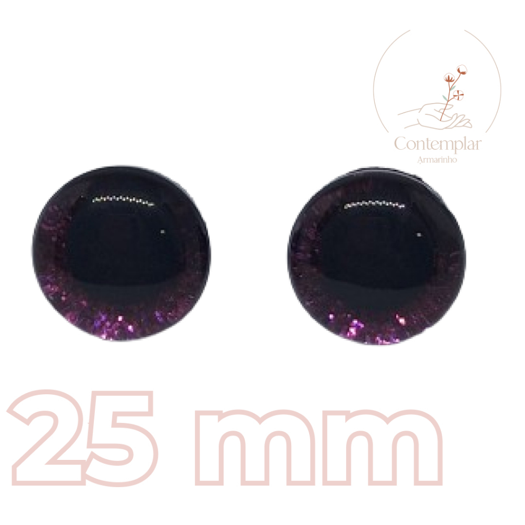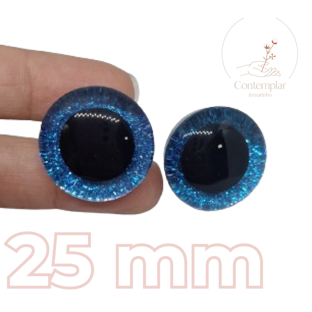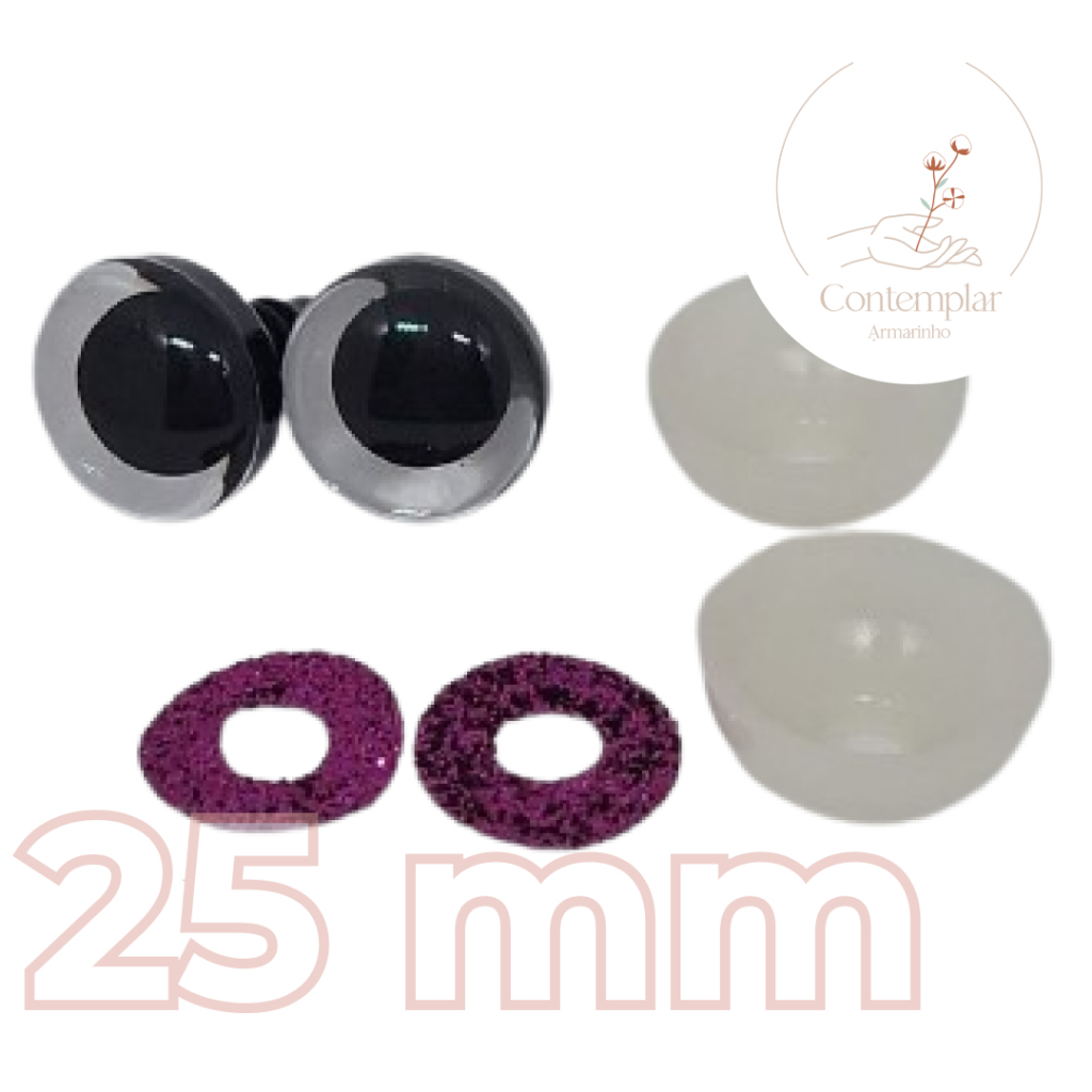 Kit olhos com glitter com trava de segurança para amigurumi - 25 mm - 2 unidades