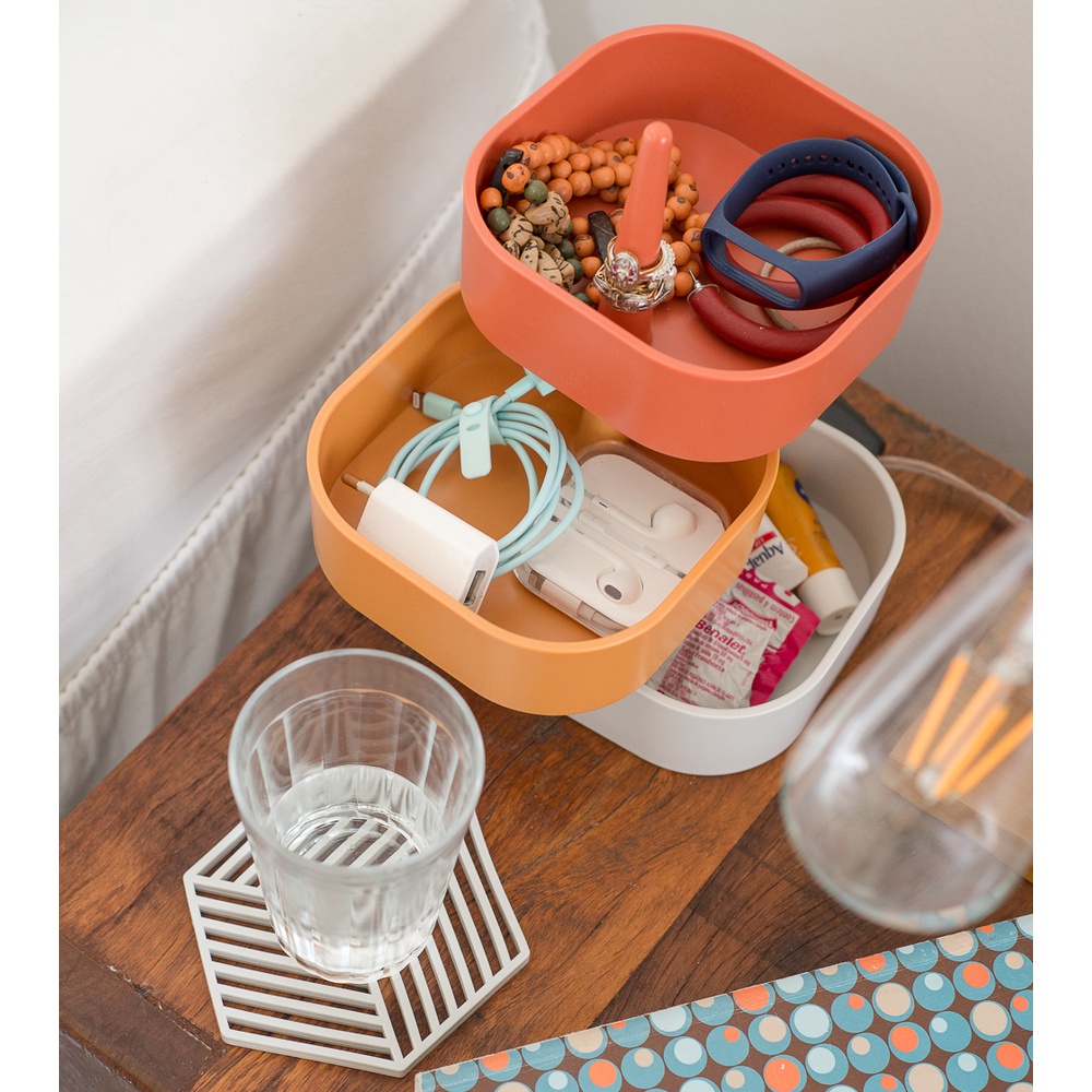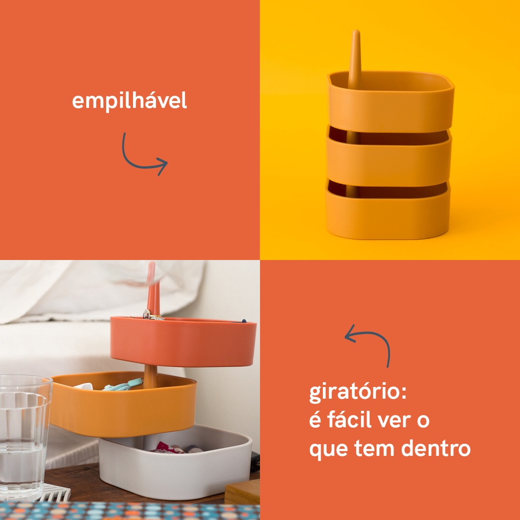 Kit organizador porta objetos 3 andares empilhável multiuso mostarda - Oikos