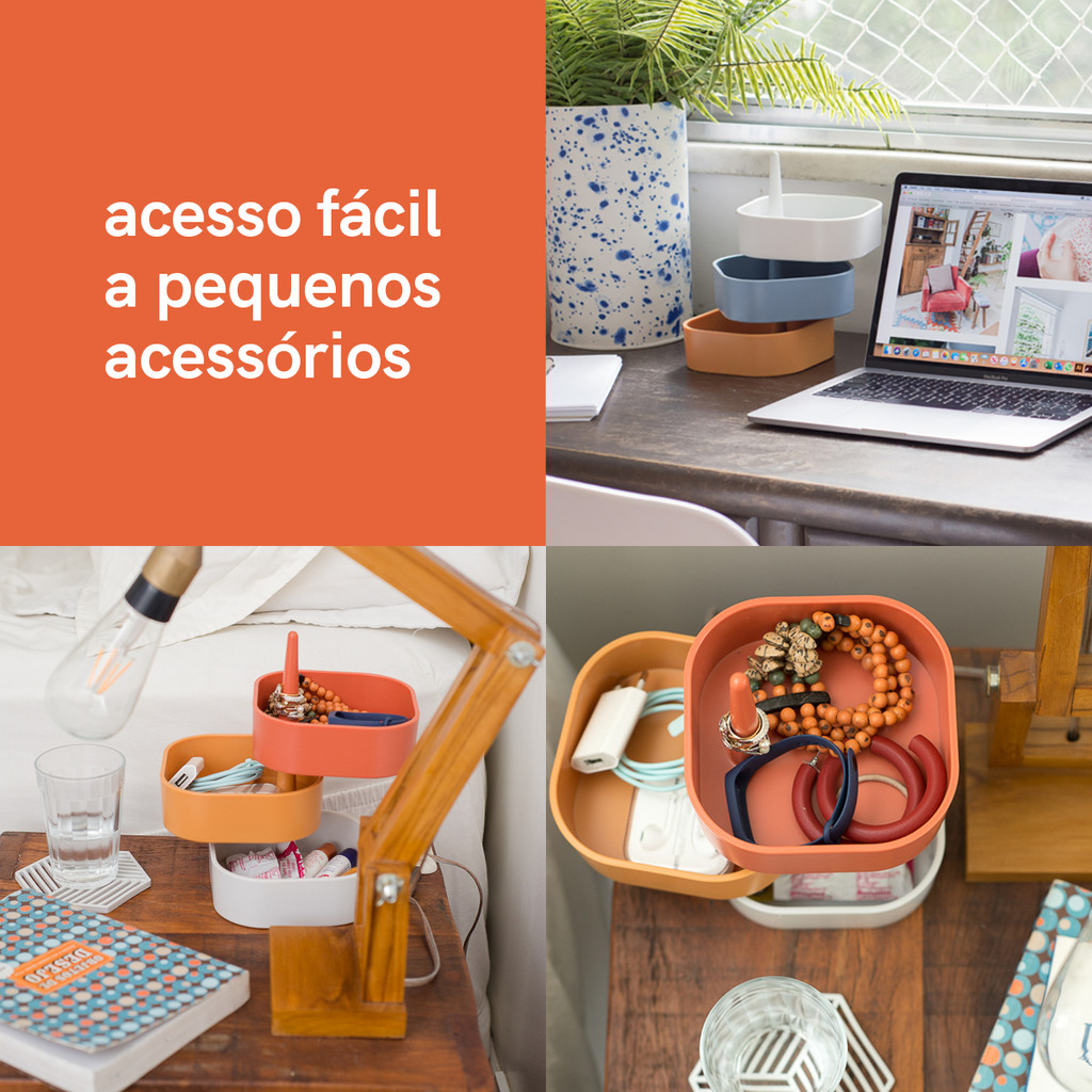 Kit Mini Organizador Empilhável Multiuso Mostarda Oikos – 3pçs