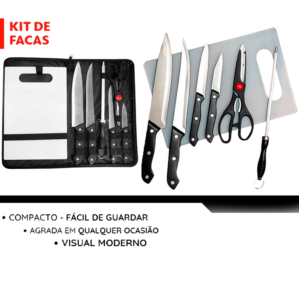 Kit para Churrasco 7 Peças Em Inox Com Estojo - Western Conjunto Profissional