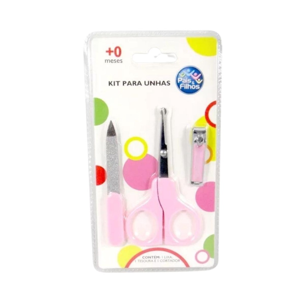Kit para Unhas Completo Bebês Tesoura Lixa e Cortador Rosa