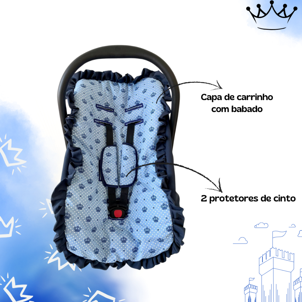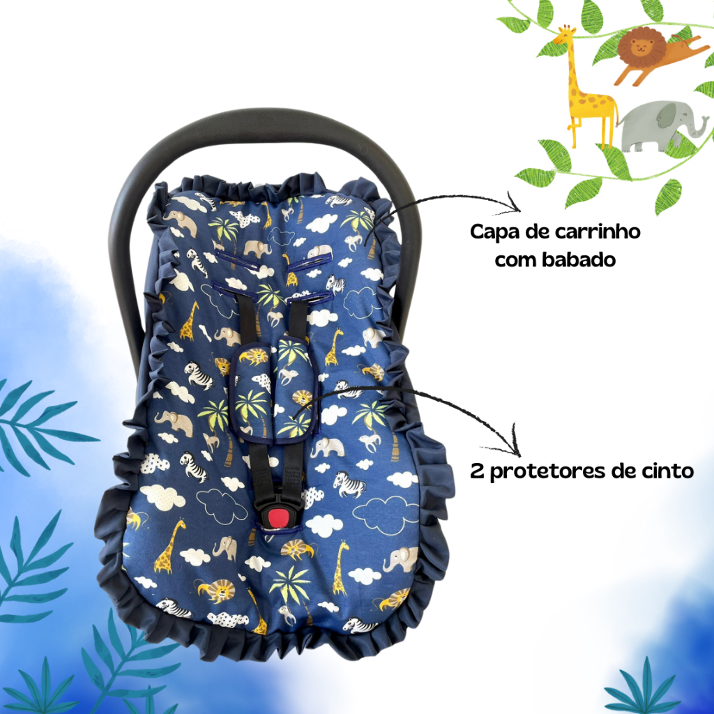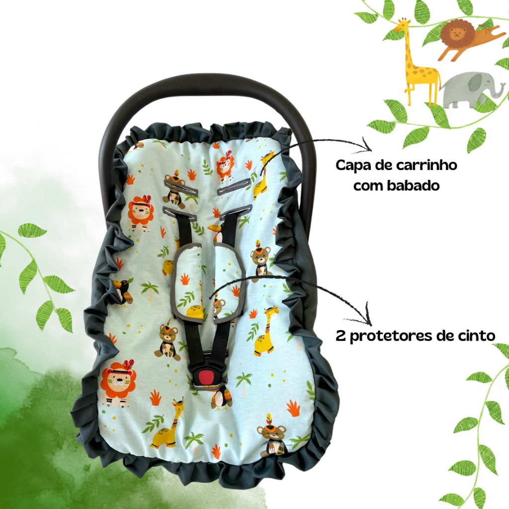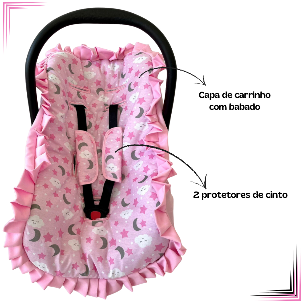 Kit para bebê conforto 3 peças universal Galzerano Chicco Cosco Burigotto capa + protetores cinto