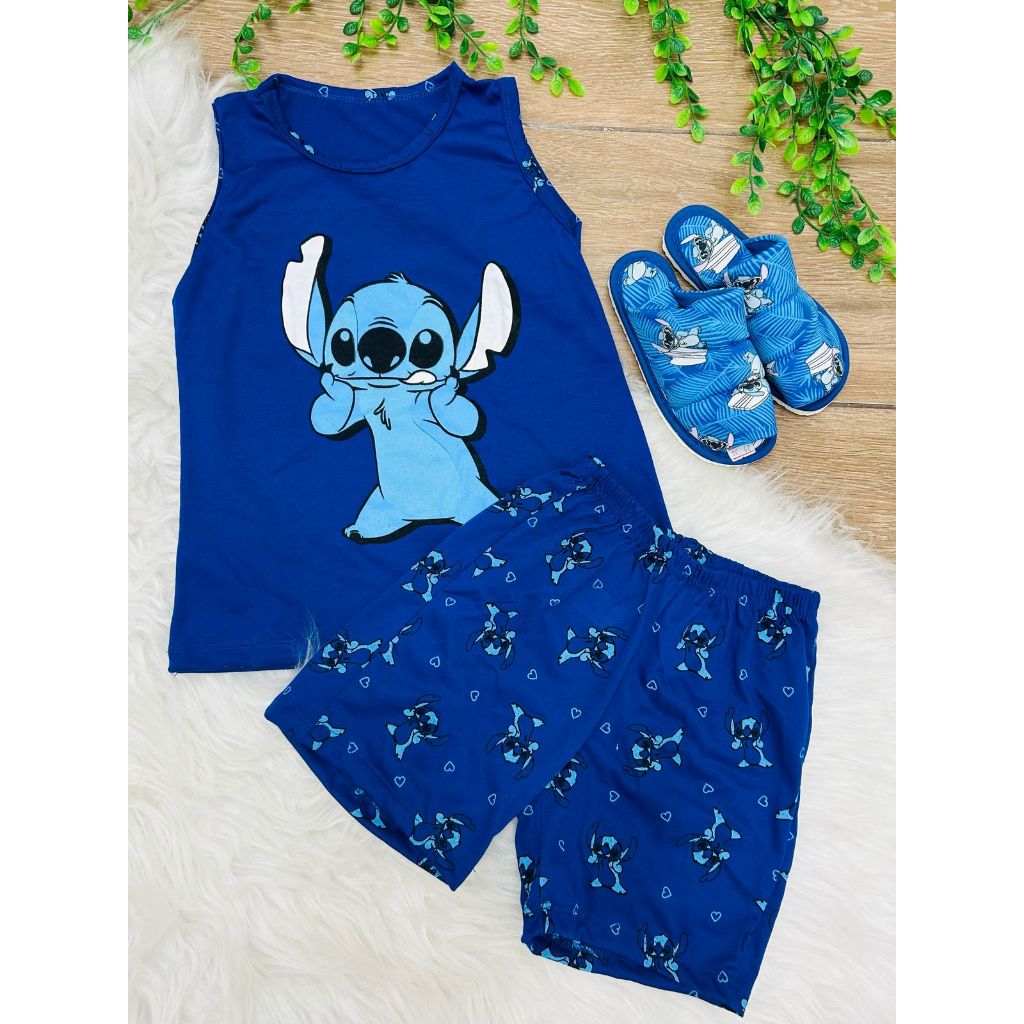 Kit pijama masculino stitch infantil + pantufa de menino regata juvenil verao
