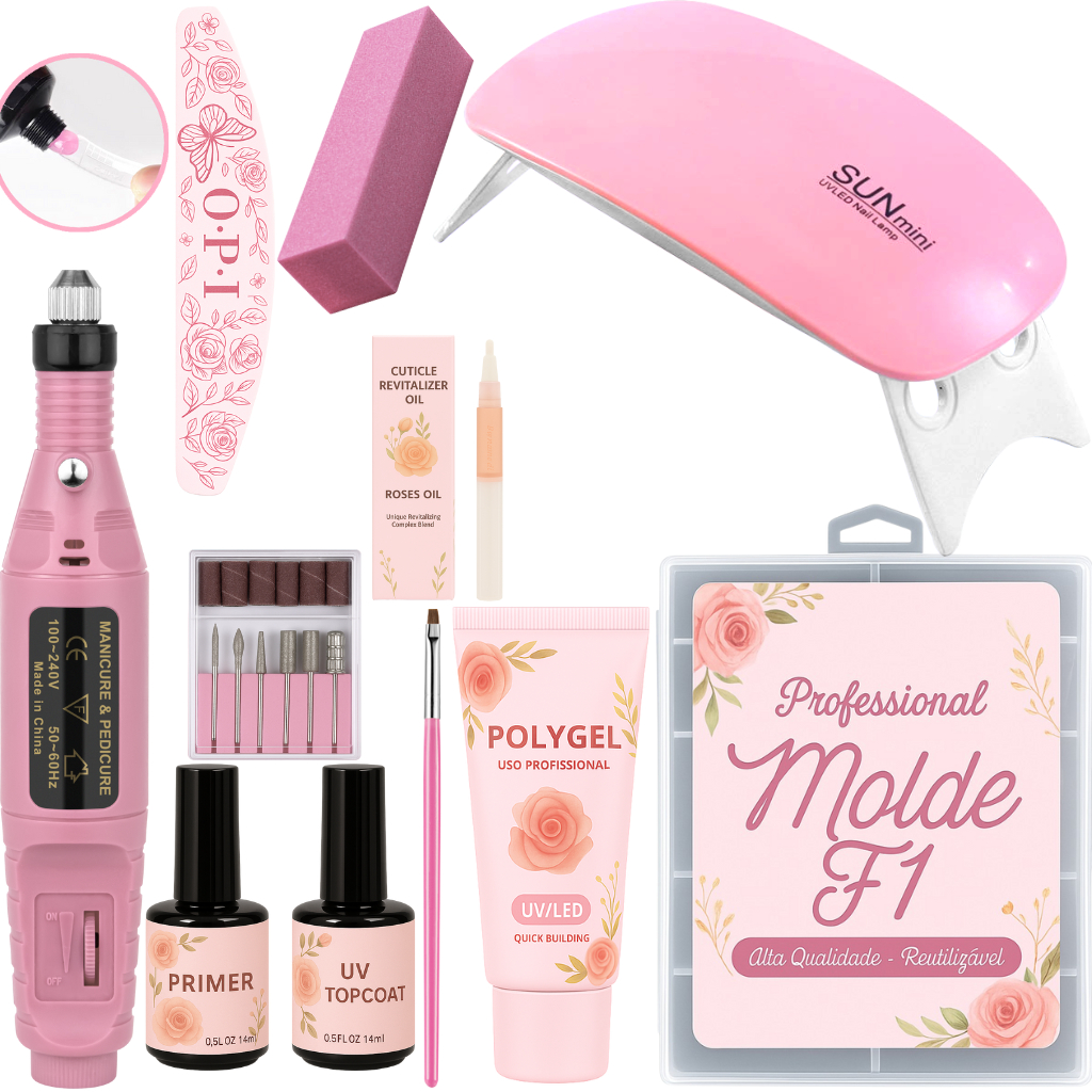 Kit polygel + Lixadeira elétrica de unha + cabine sun led/UV