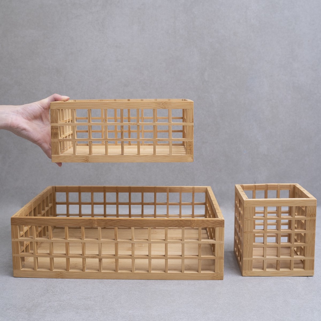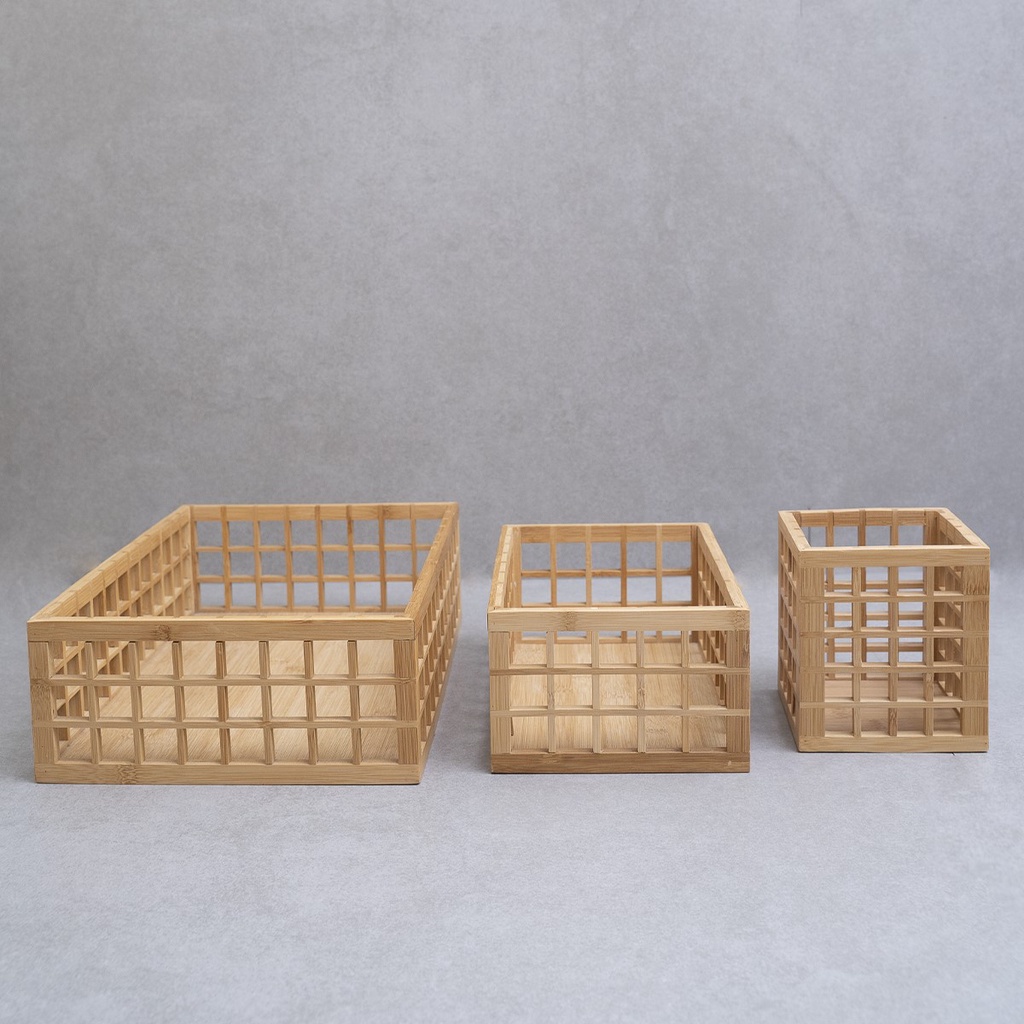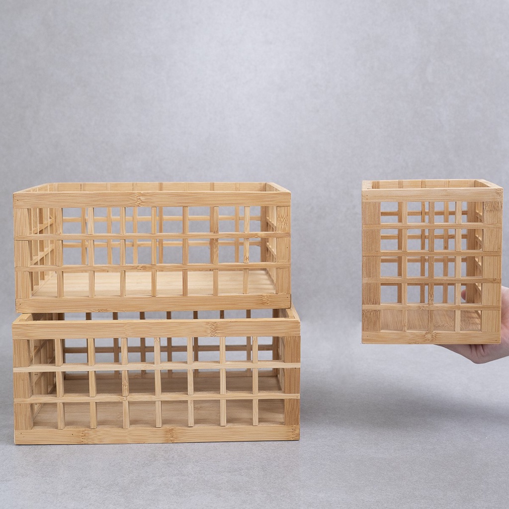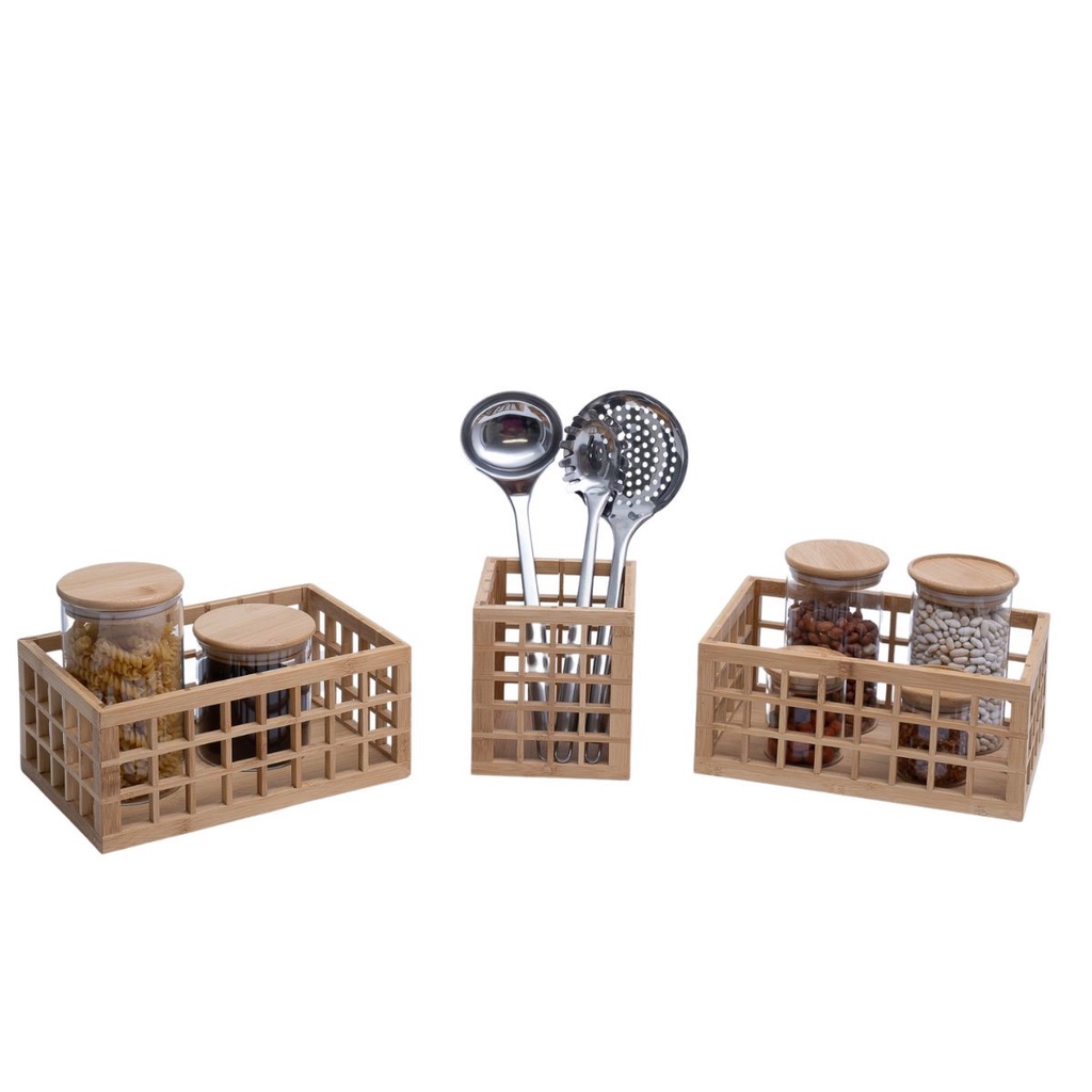 Kit porta utensílios 2 cestos vazado bambu 26cm e 38cm Oikos