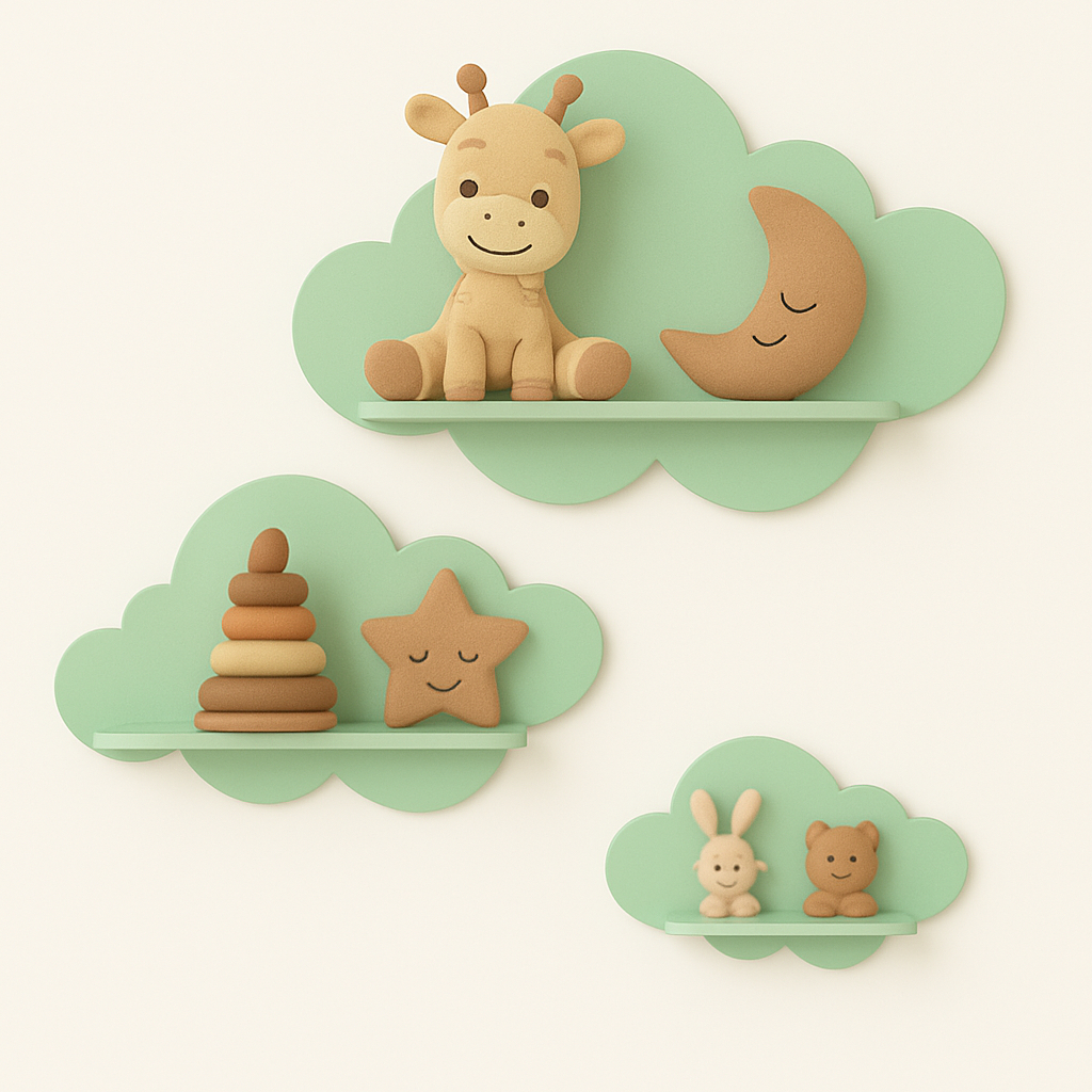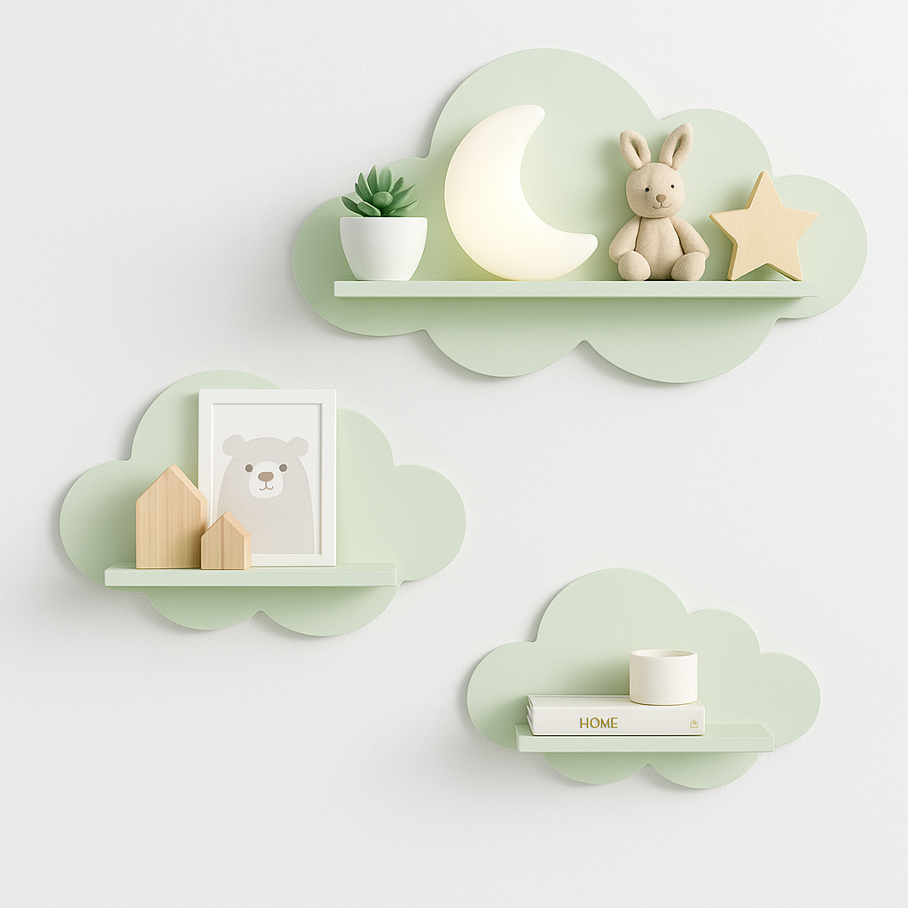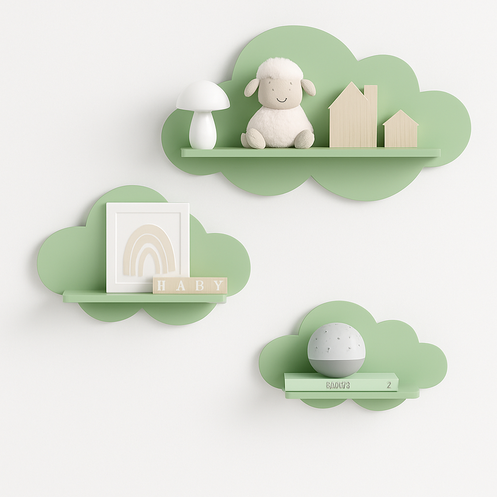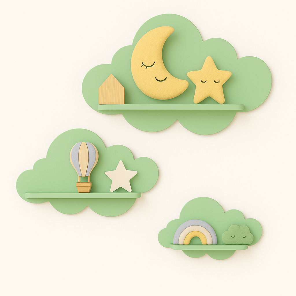 Kit prateleira nuvem - VERDE - 3 peças (P, M e G) em MDF