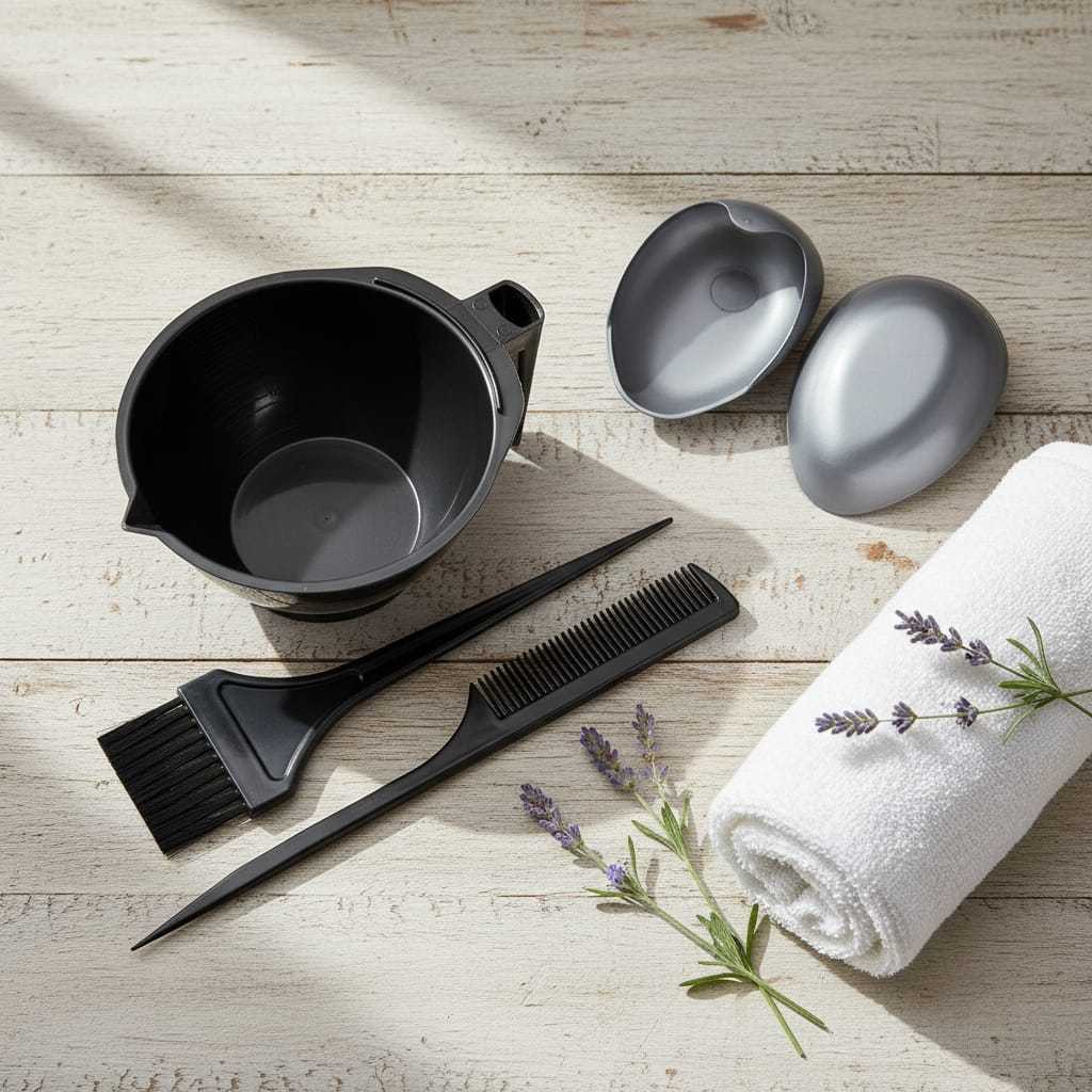Kit profissional completo para coloração capilar com tigela graduada e acessórios pretos resistentes