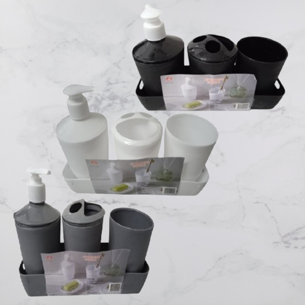 Kits 4 E 3Peças Banheiro Preto Cinza Branco Plástico Útil Copo Saboneteira Dispenser Porta Escovas