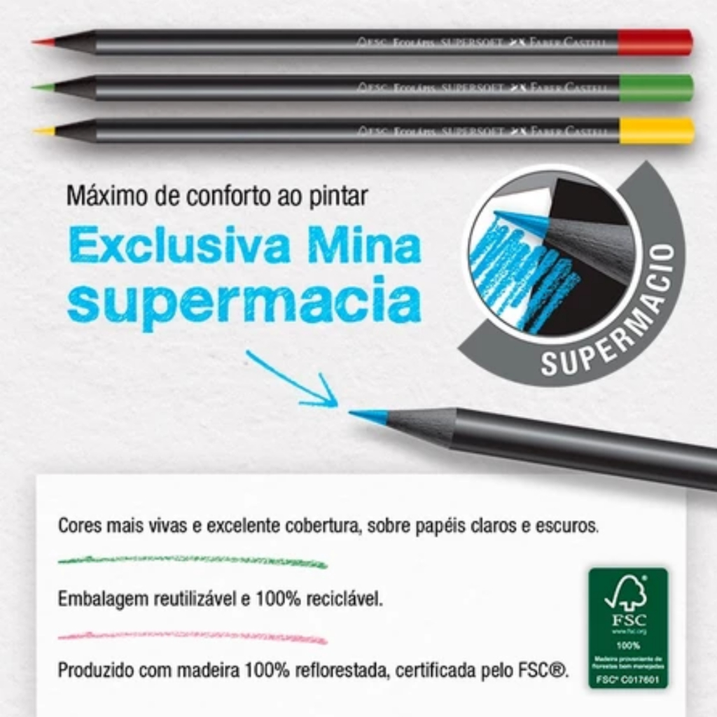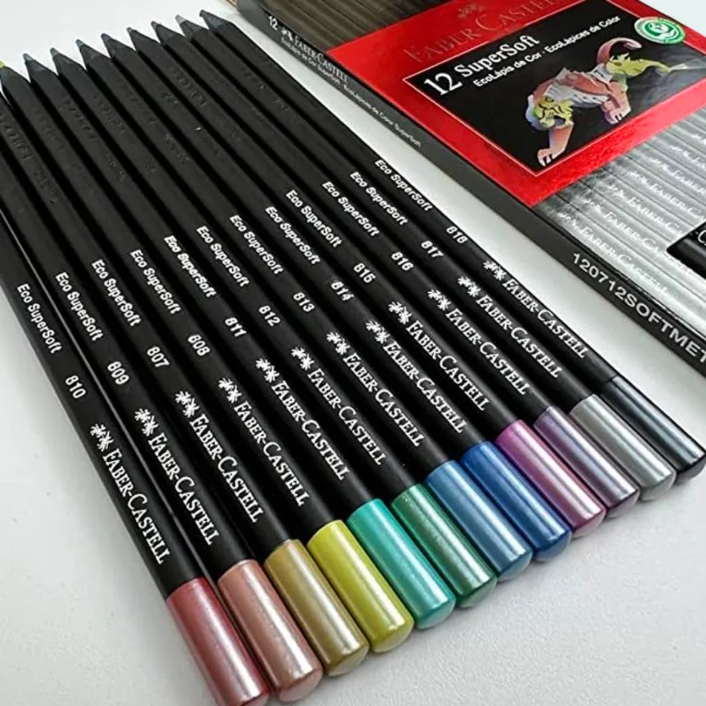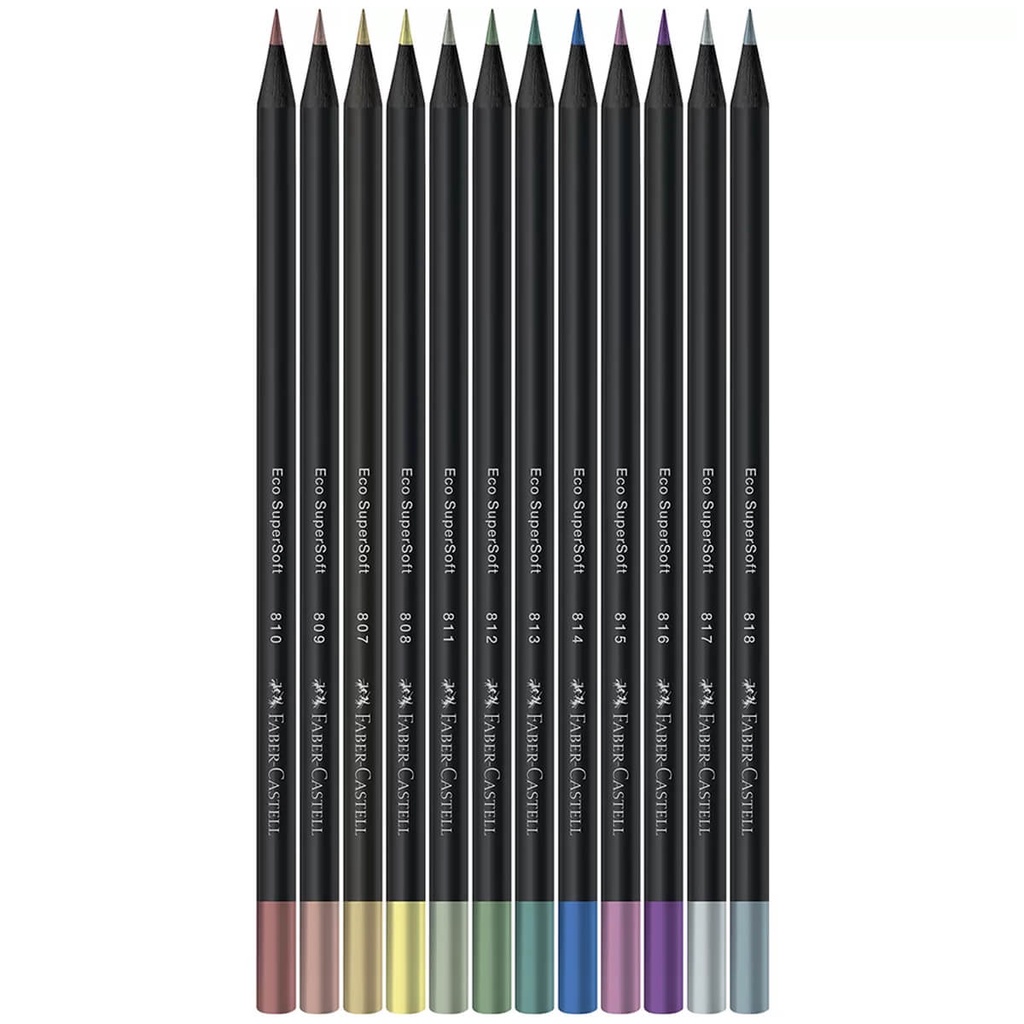 Lápis De Cor EcoLapis SuperSoft 12 Cores Metalicas Resistente Cores Vivas Faber Castell