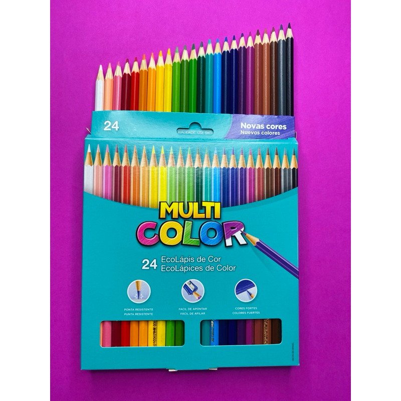 Lápis De Cor Multicolor Sextavado 24 Cores Resistente Super Eco