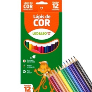 Lápis de Cor LeoLeo 12 Unidades Composição Resinas Colorir Plásticas e Pigmentos Escolar Papelaria Artigo Escolar Arte