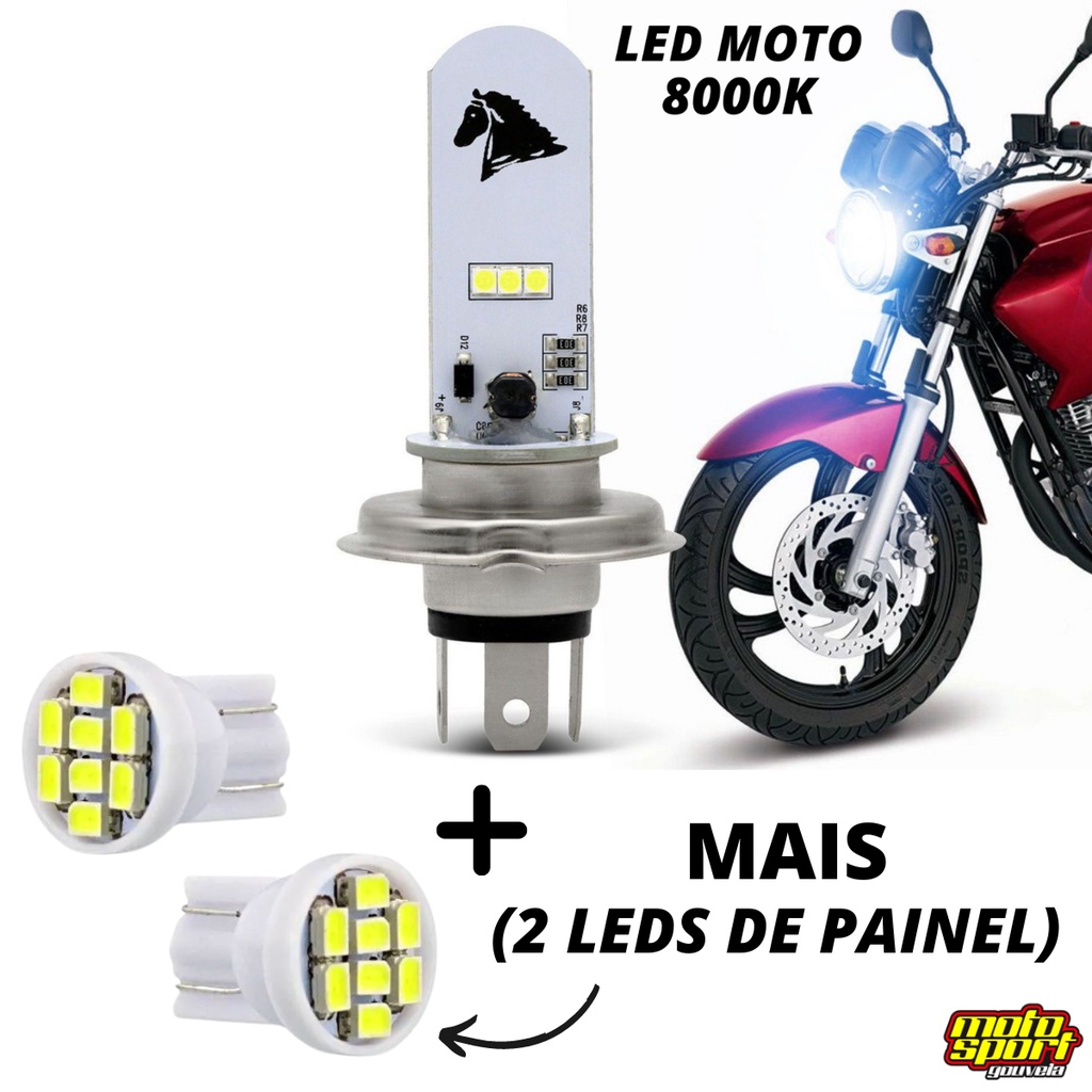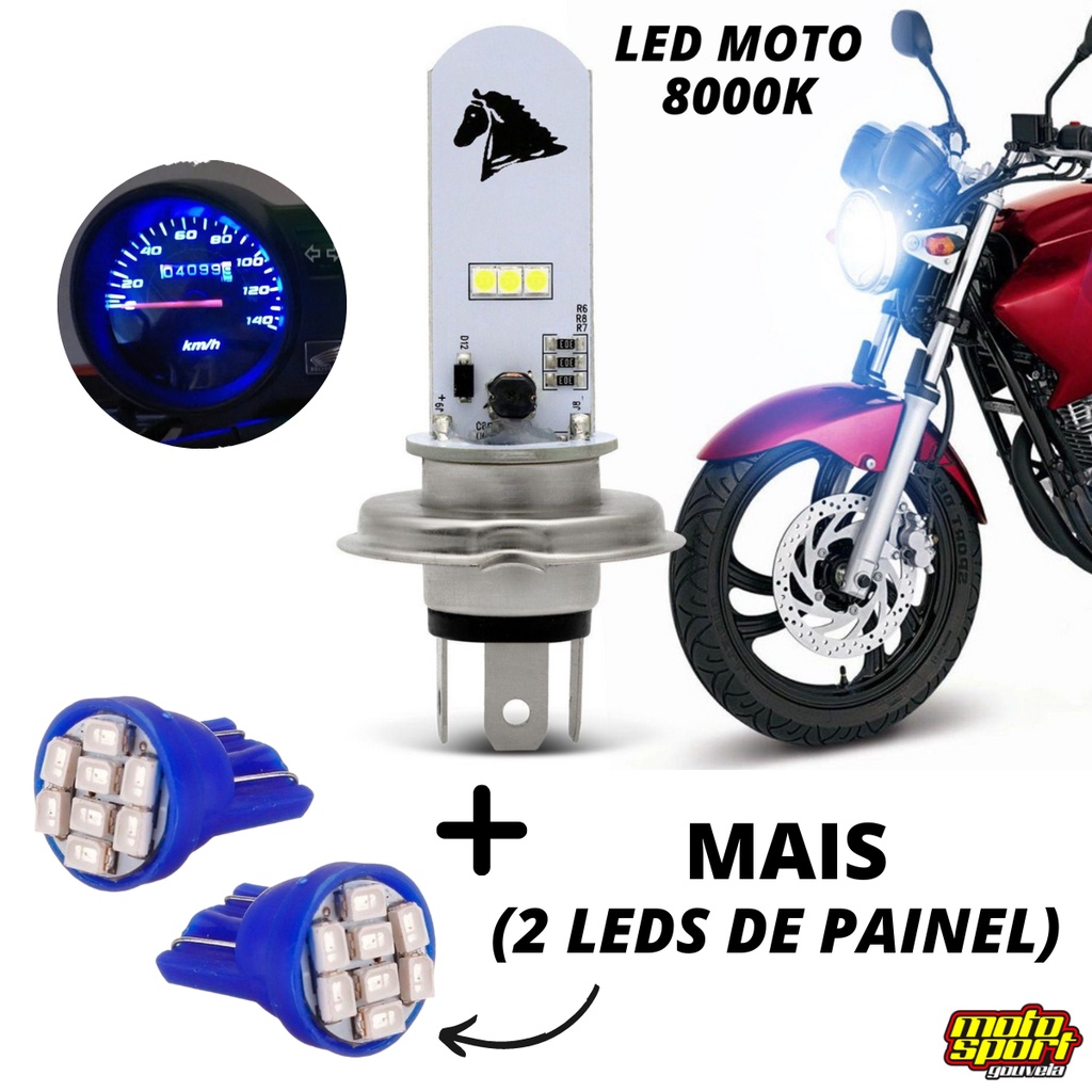 Lâmpada Farol Led Moto H4 8000k Super Branca Stallion Cavalinho