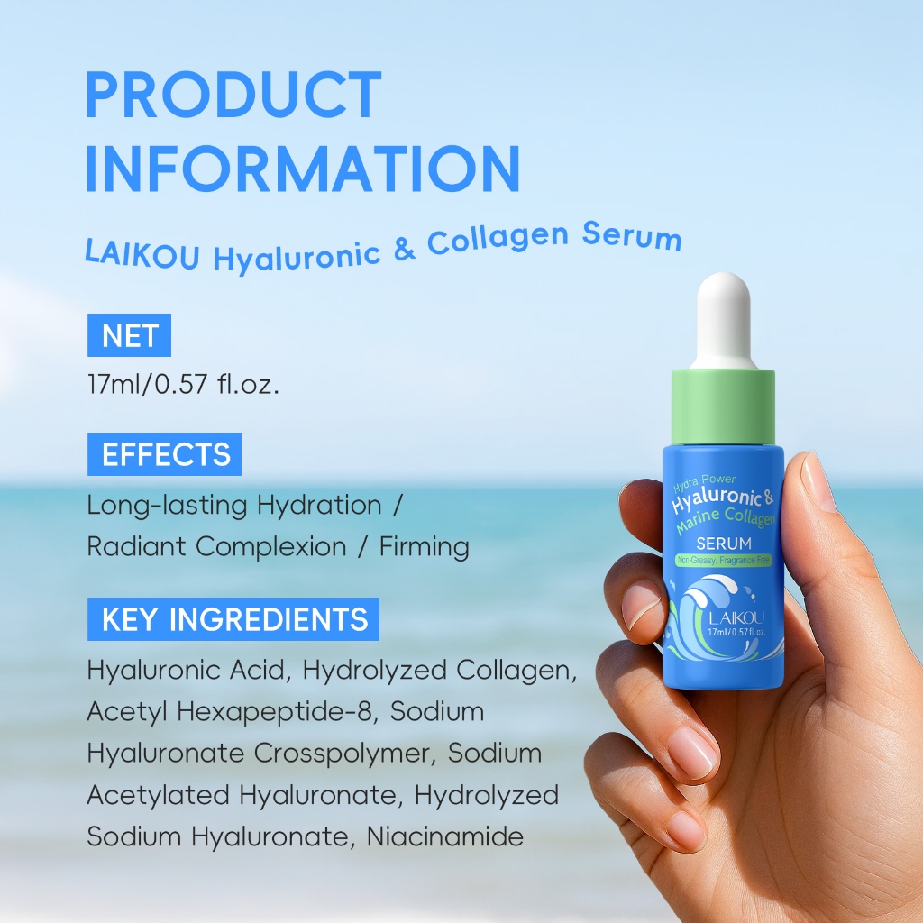 LAIKOU Ácido Hialurônico E Soro De Colágeno Marinho 17ml Hidratação Profunda + Brilho Instantâneo Para Pele Radiante Ant