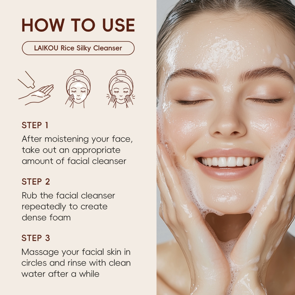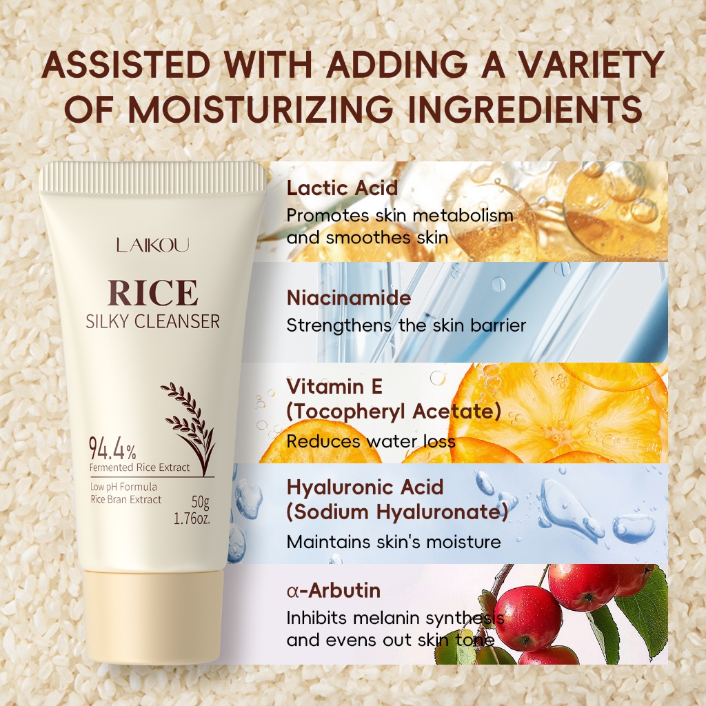 LAIKOU Arroz Sedoso Limpador Baixo pH Limpeza Suave Hidratante Sem Aperto 50g