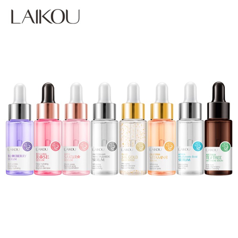 LAIKOU Facial Serum Sakura/Vitamin C/24K Gold Snail/Tea Tree Essence Shrink Pores Remove Acne Brightening Soothing Skin